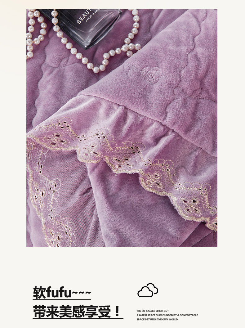 (总)青竹苑 2025新款雕花牛奶绒夹棉床盖款四件套,森野-幻紫,森野-暖白,森野-柔粉,森野-浅灰