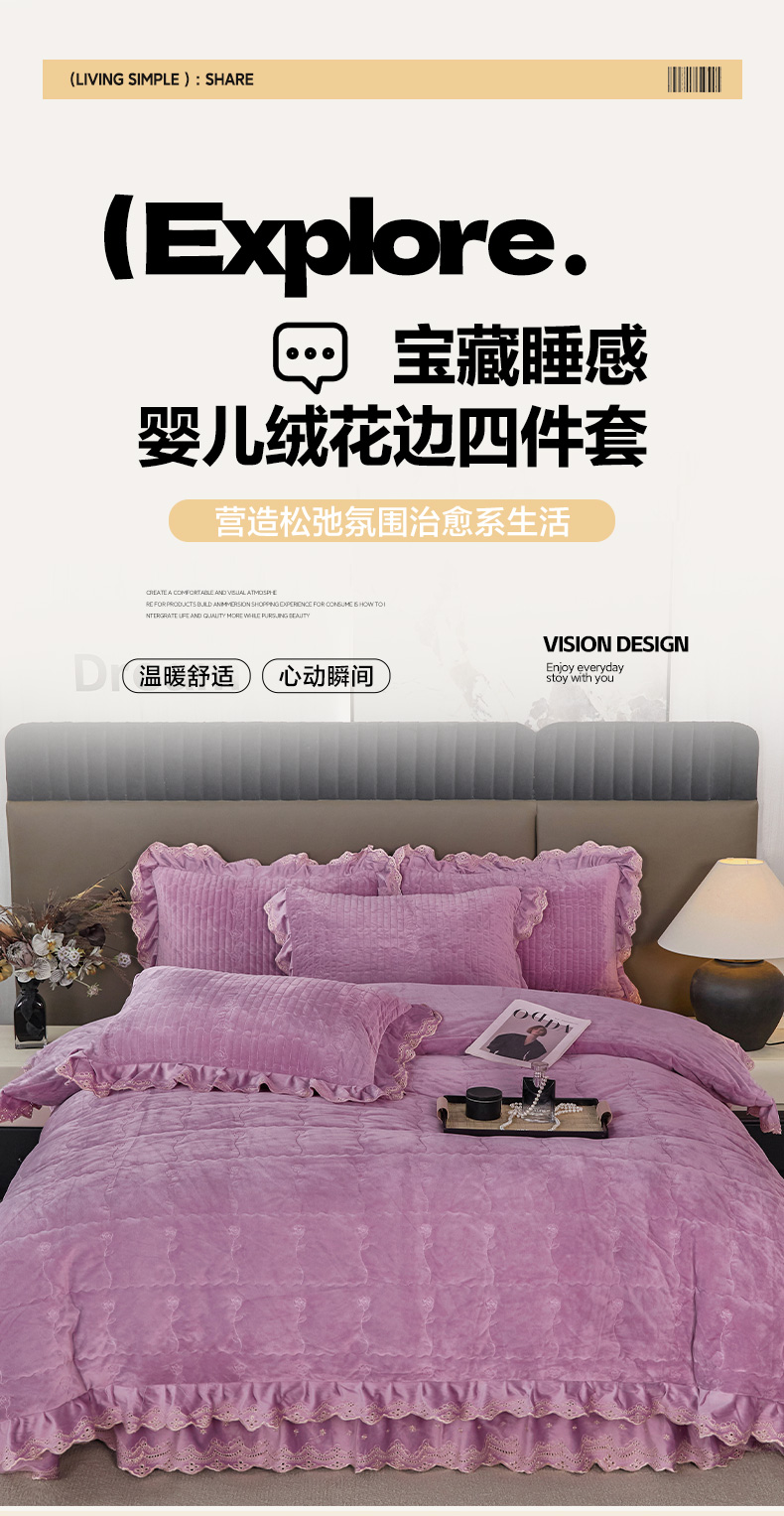 商品名称:青竹苑 2025新款婴儿绒宝宝绒玫瑰版床盖款四件套 慕达-紫