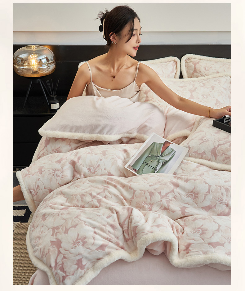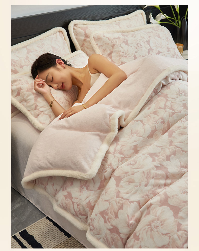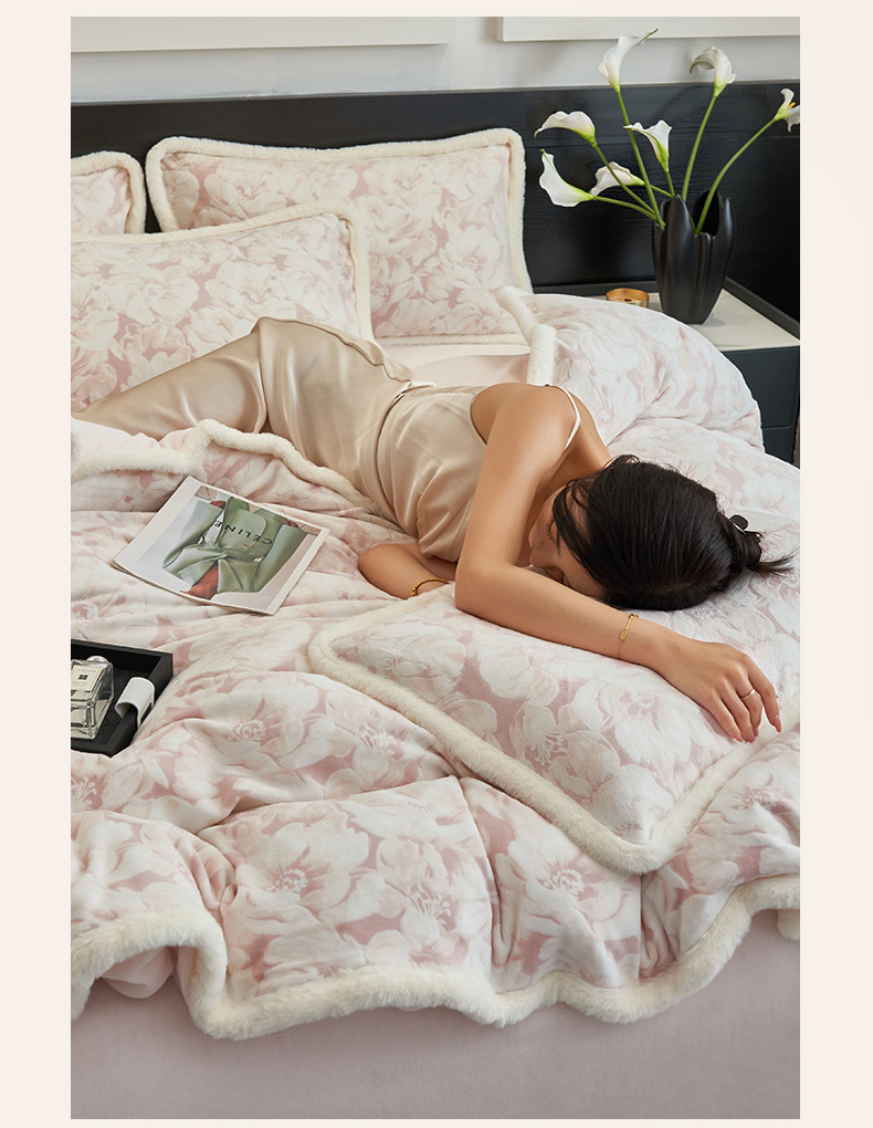 金鹰 2025新款A类雕花牛奶绒烂花兔毛包边四件套 繁花