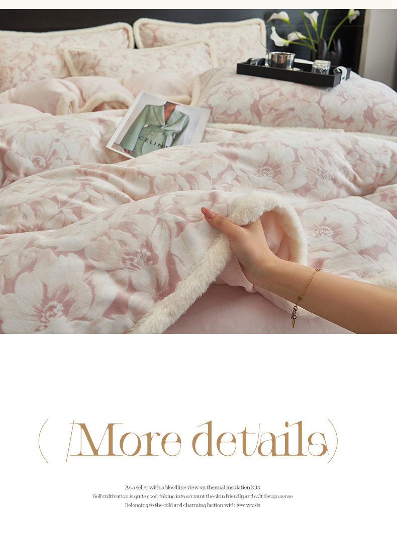 商品名称:金鹰 2025新款A类雕花牛奶绒烂花兔毛包边四件套 繁花