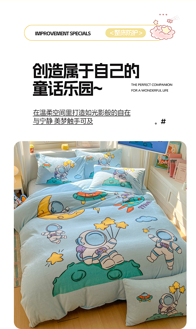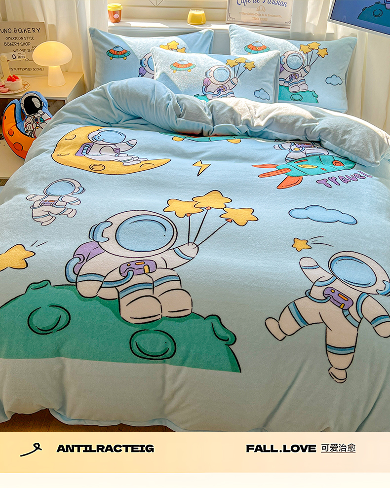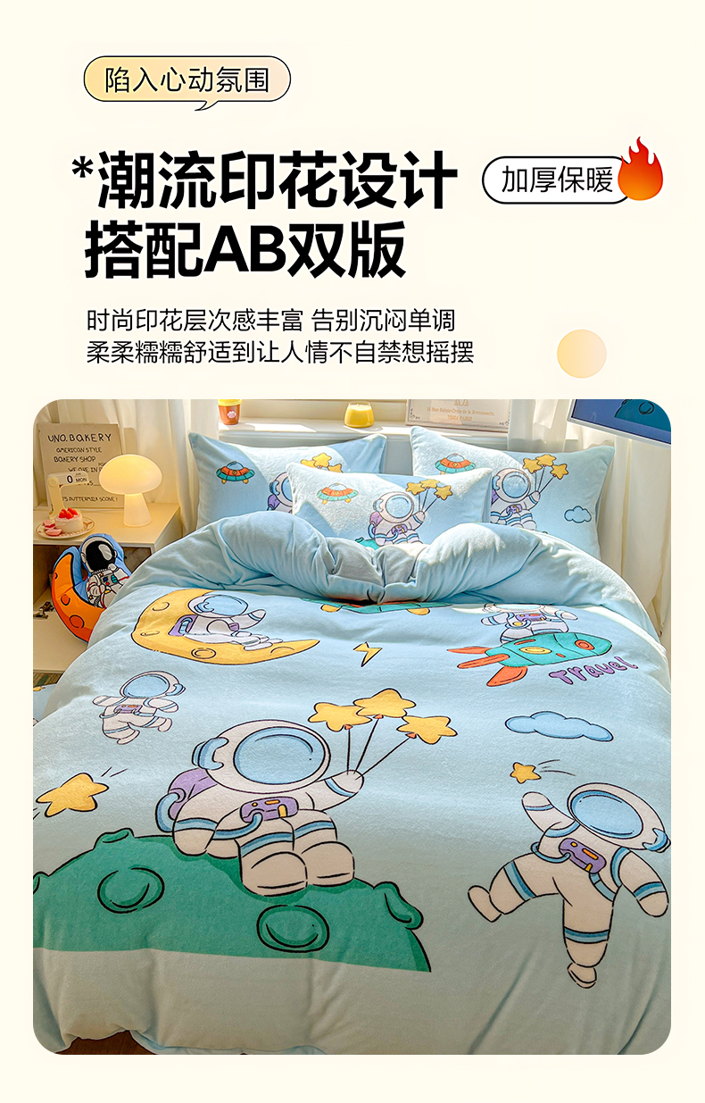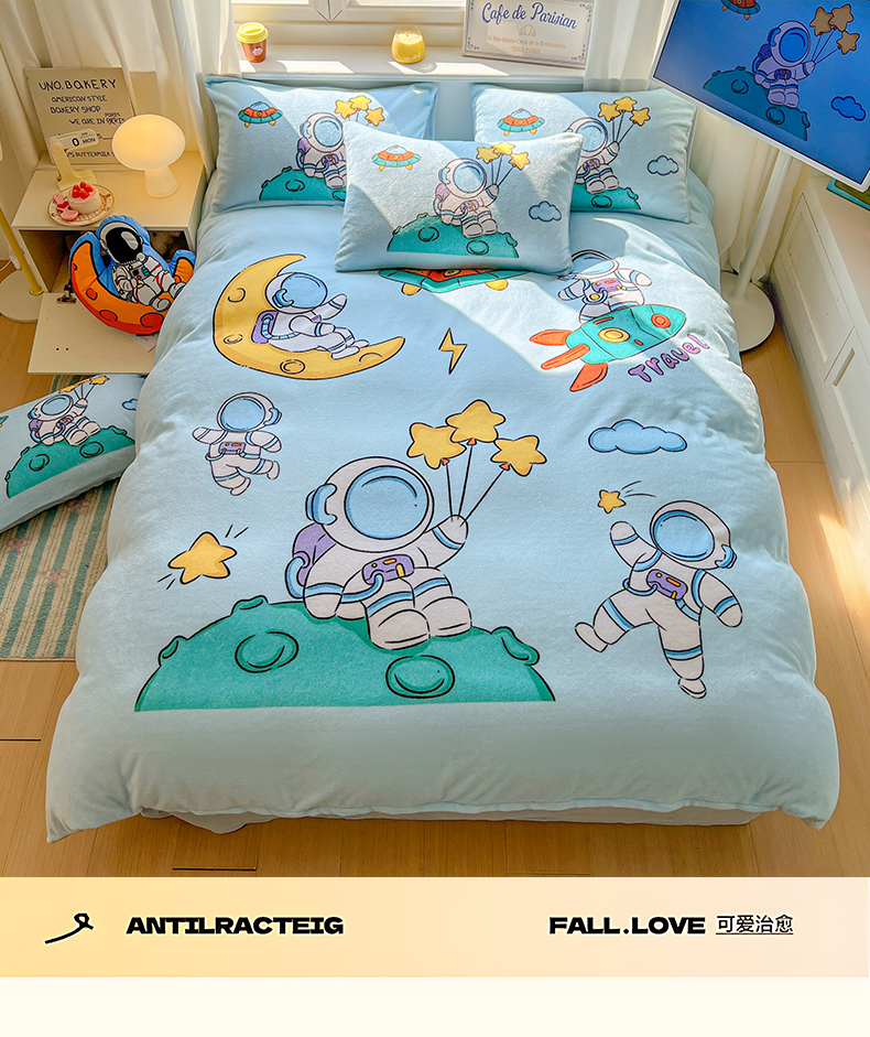 当前位置: 91家纺网 > 商品网购 > 床品套件 > 四件套 > 牛奶绒四件套 > 浩诚 2025新款高克重原创设计宇航员太空人牛奶绒大版卡通四件套 宇航员家族