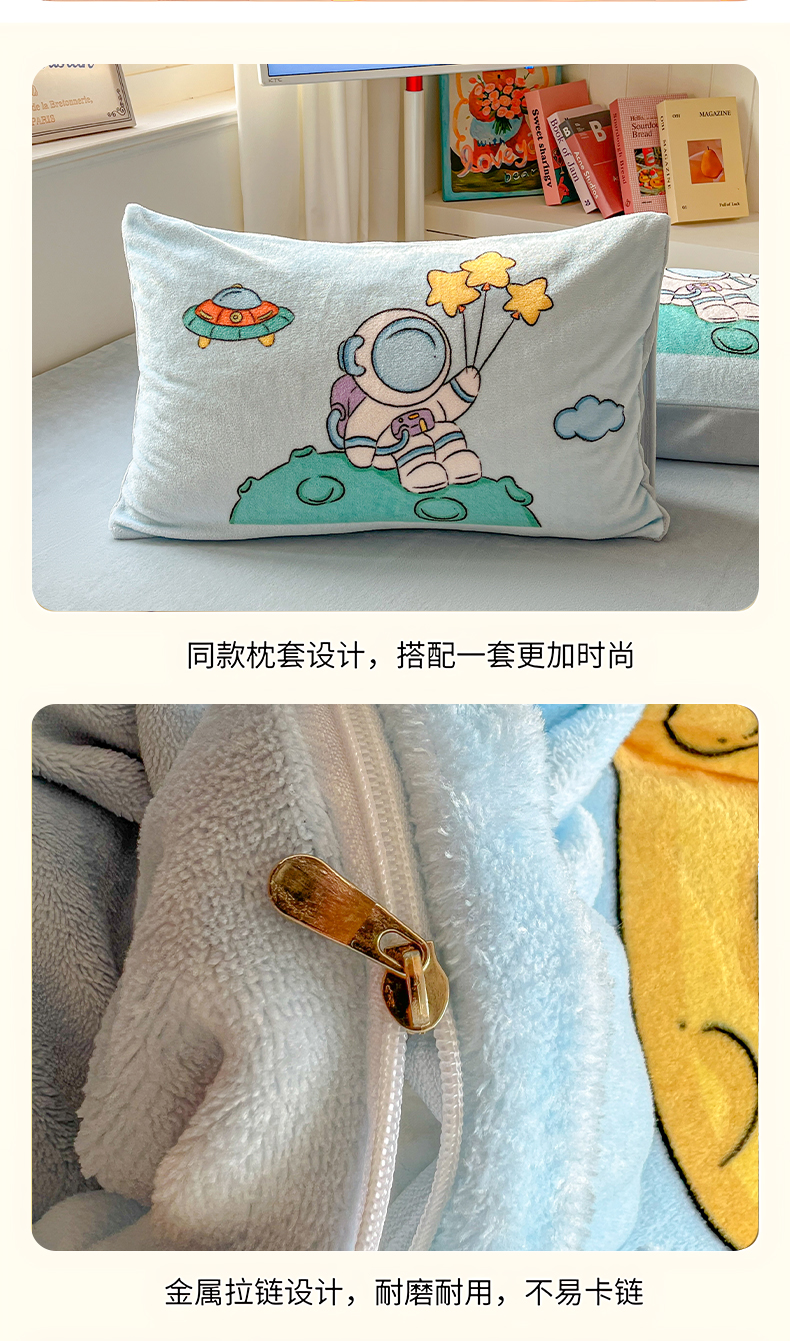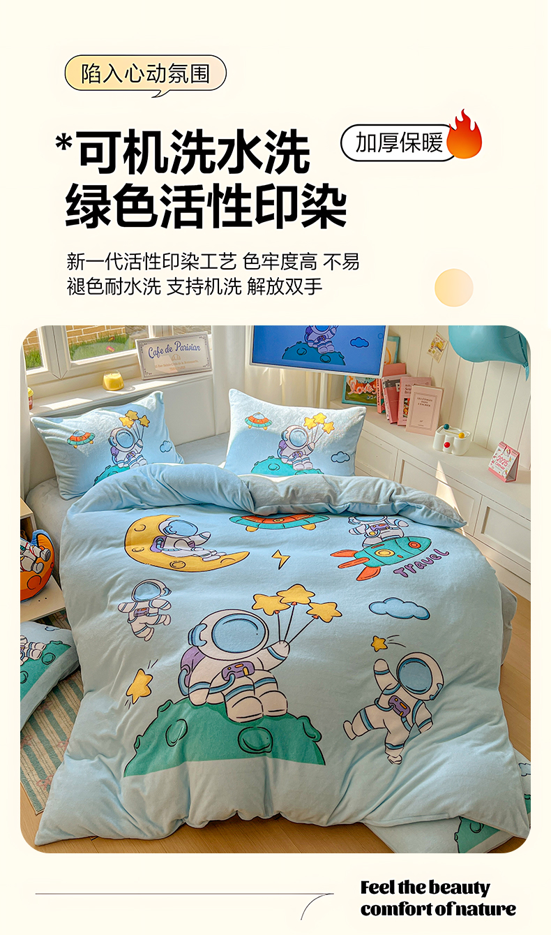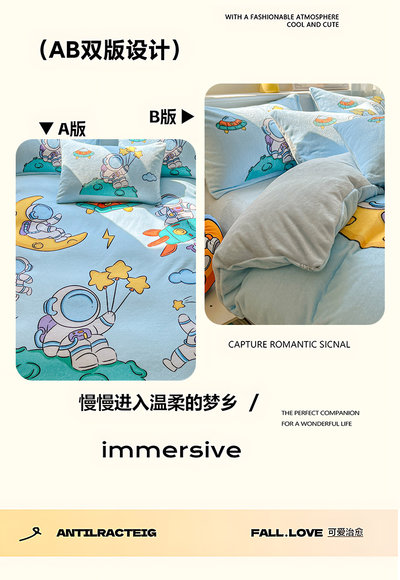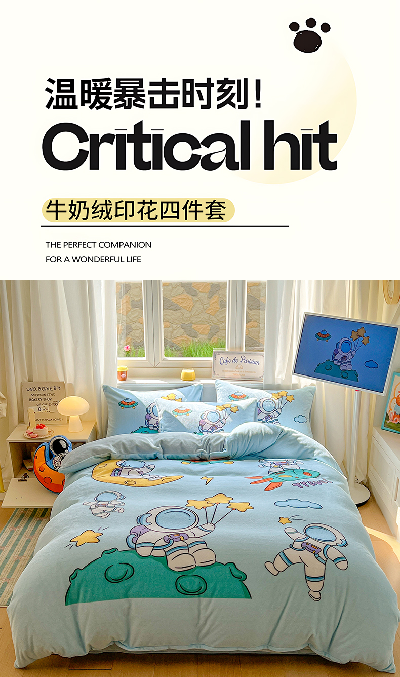 当前位置: 91家纺网 > 商品网购 > 床品套件 > 四件套 > 牛奶绒四件套 > 浩诚 2025新款高克重原创设计宇航员太空人牛奶绒大版卡通四件套 宇航员家族