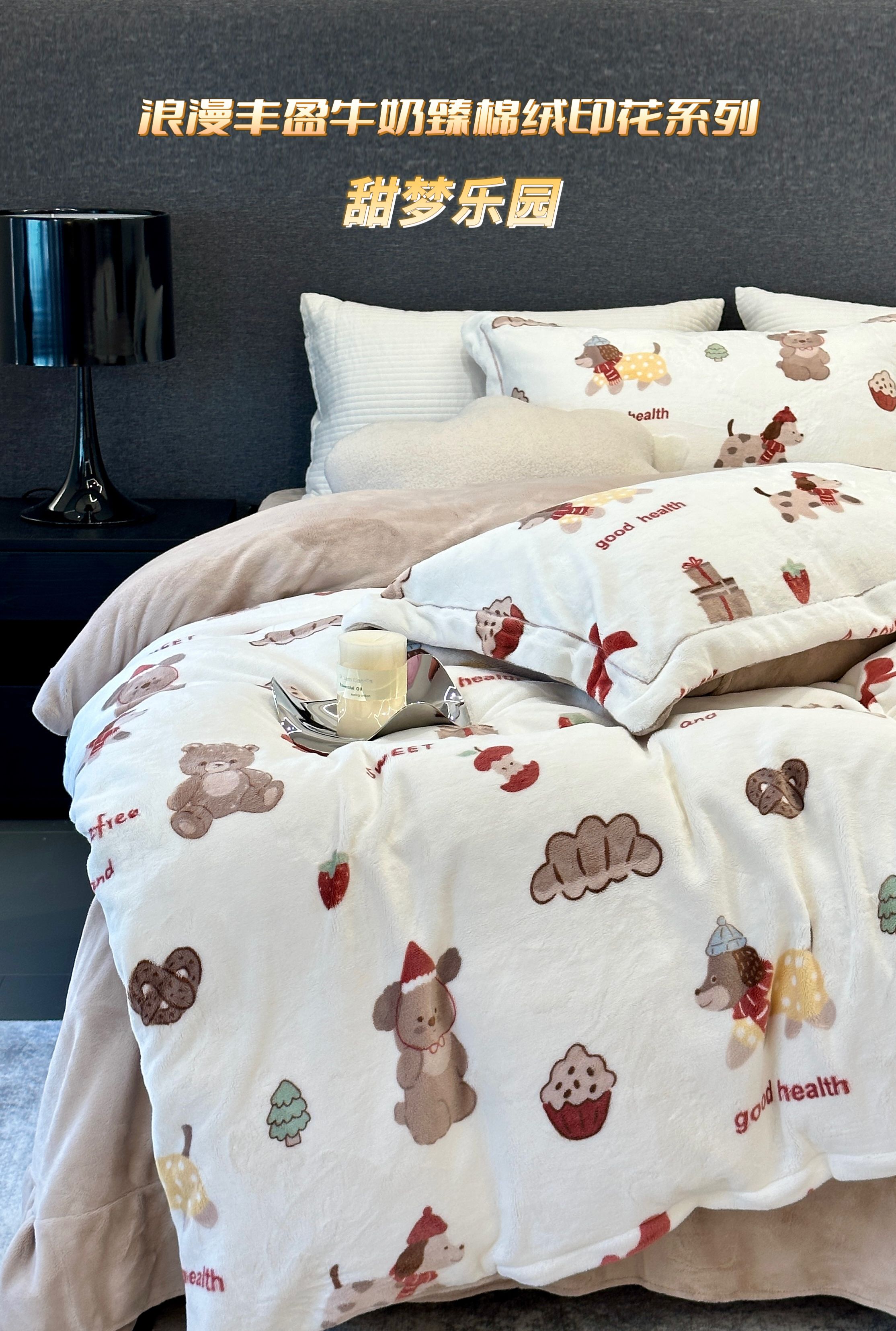 (总)JUICY 橘滋家纺 2025新款浪漫丰盈牛奶臻棉绒印花系列四件套,波尼兔,朵影,恐龙乐园,腊肠狗狗,麦拉,曼蕊,莓时莓刻,墨染,挪威流光,浅玫浮光,秋蔓,恬淡时光,甜梦乐园,汀兰婉婉,小熊蘑菇屋,叶染,影格,玉容,月球之行