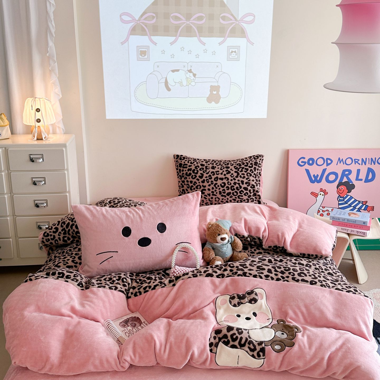 觅糖家纺 2025新款牛奶绒卡通贴布绣系列四件套 雏菊之恋