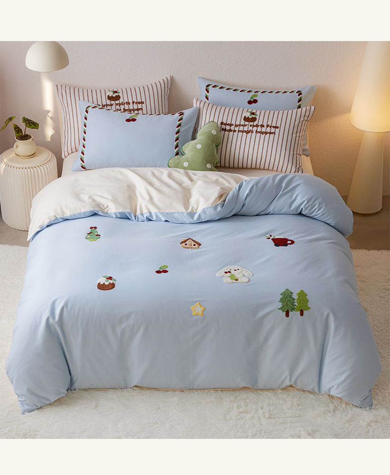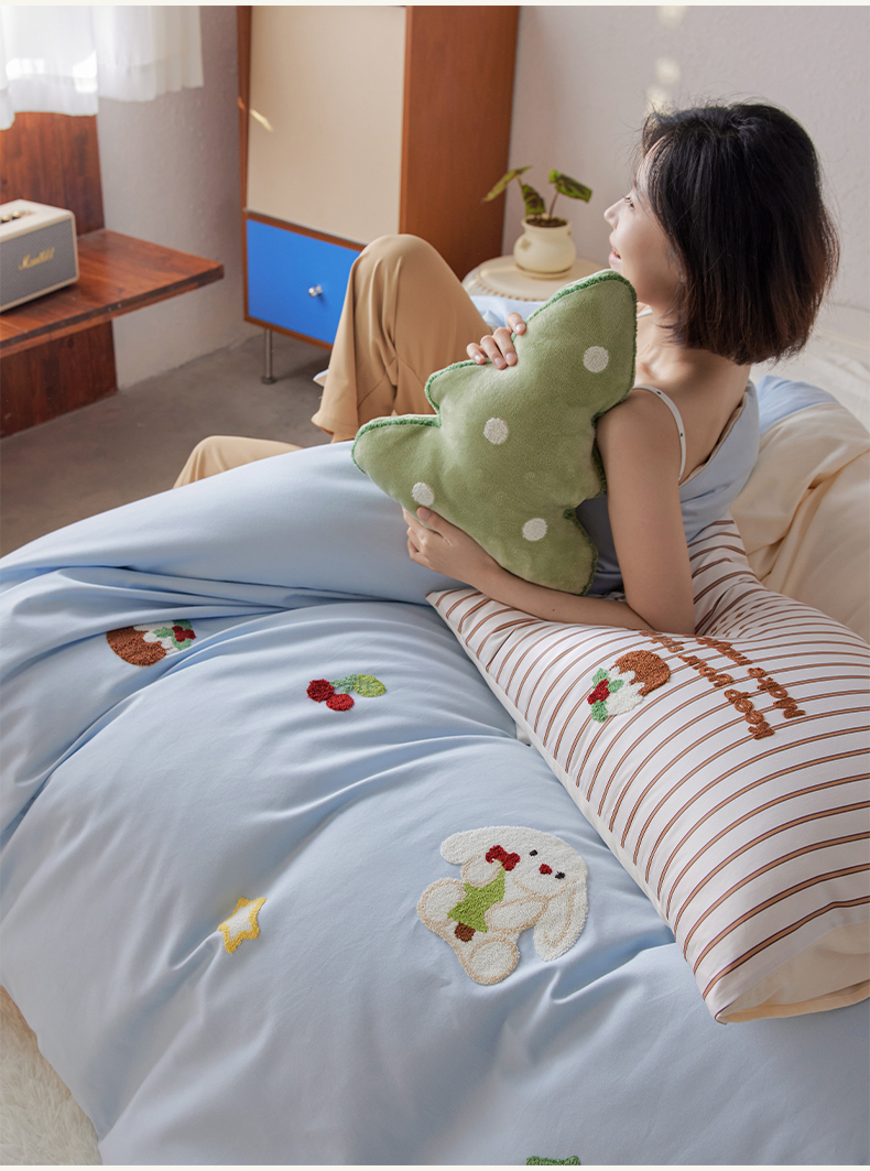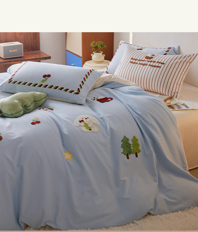 (总)简纯主义 2025新款A类趣味系列全棉长绒棉插画绣花四件套-露露米娅,露露米娅-白,露露米娅-粉,露露米娅-蓝