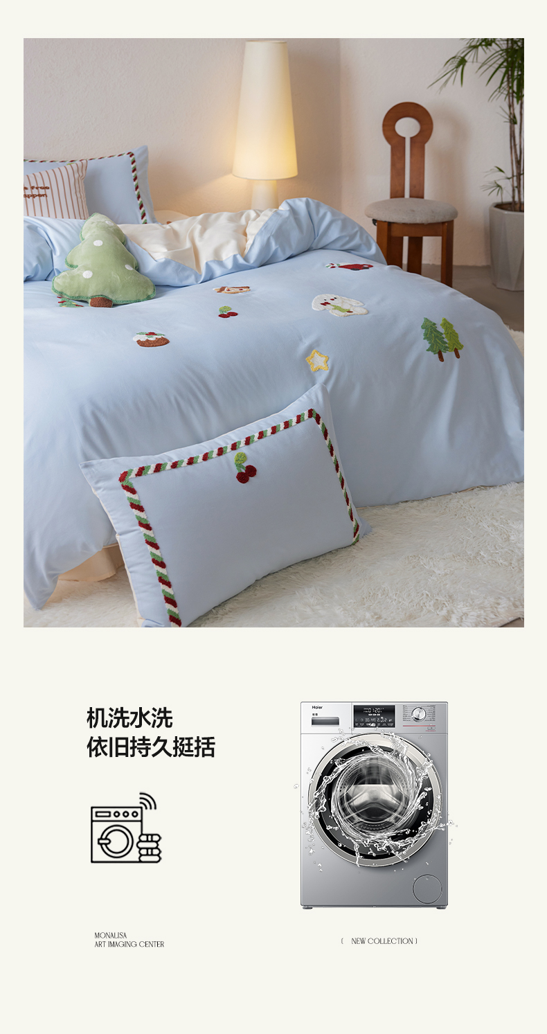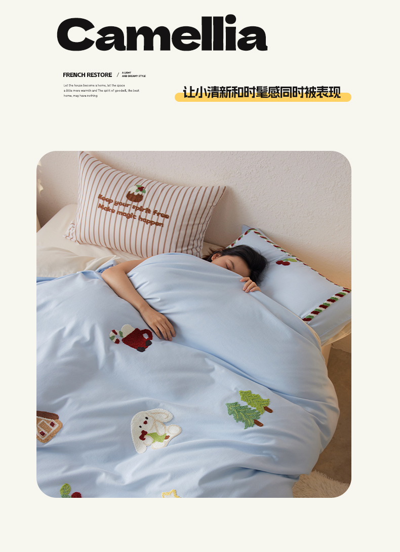 (总)简纯主义 2025新款A类趣味系列全棉长绒棉插画绣花四件套-,干脆面