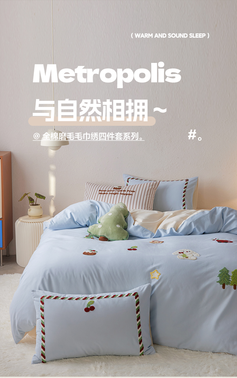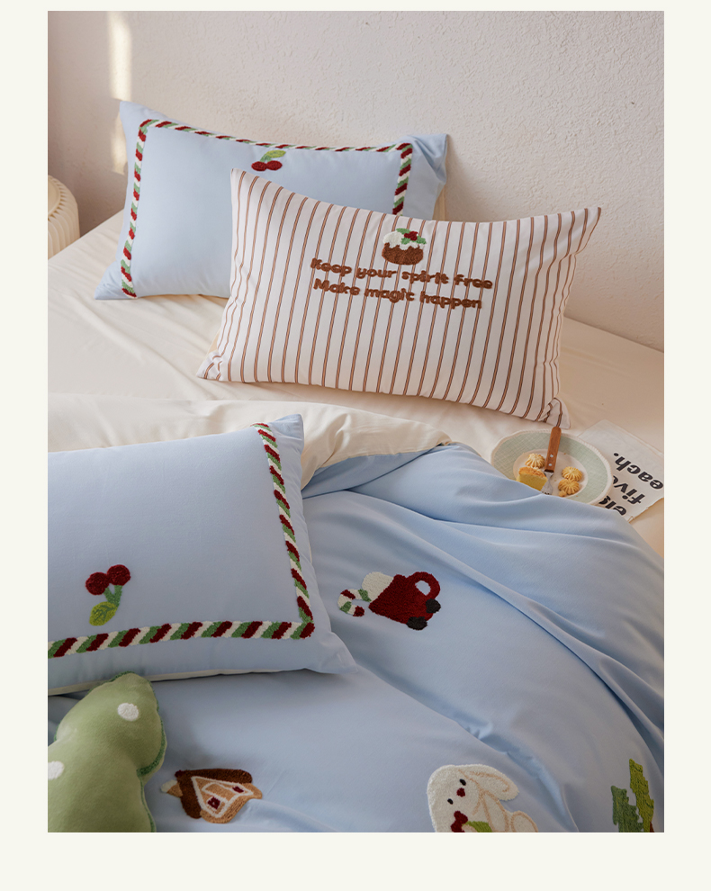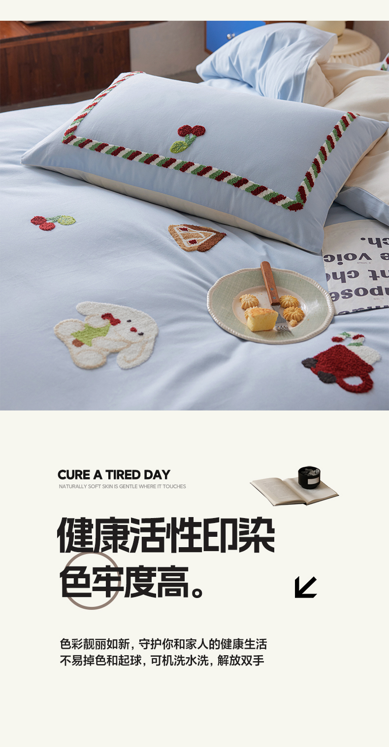 (总)简纯主义 2025新款A类趣味系列全棉长绒棉插画绣花四件套-樱桃甜心,樱桃甜心-粉紫,樱桃甜心-咖,樱桃甜心-蓝
