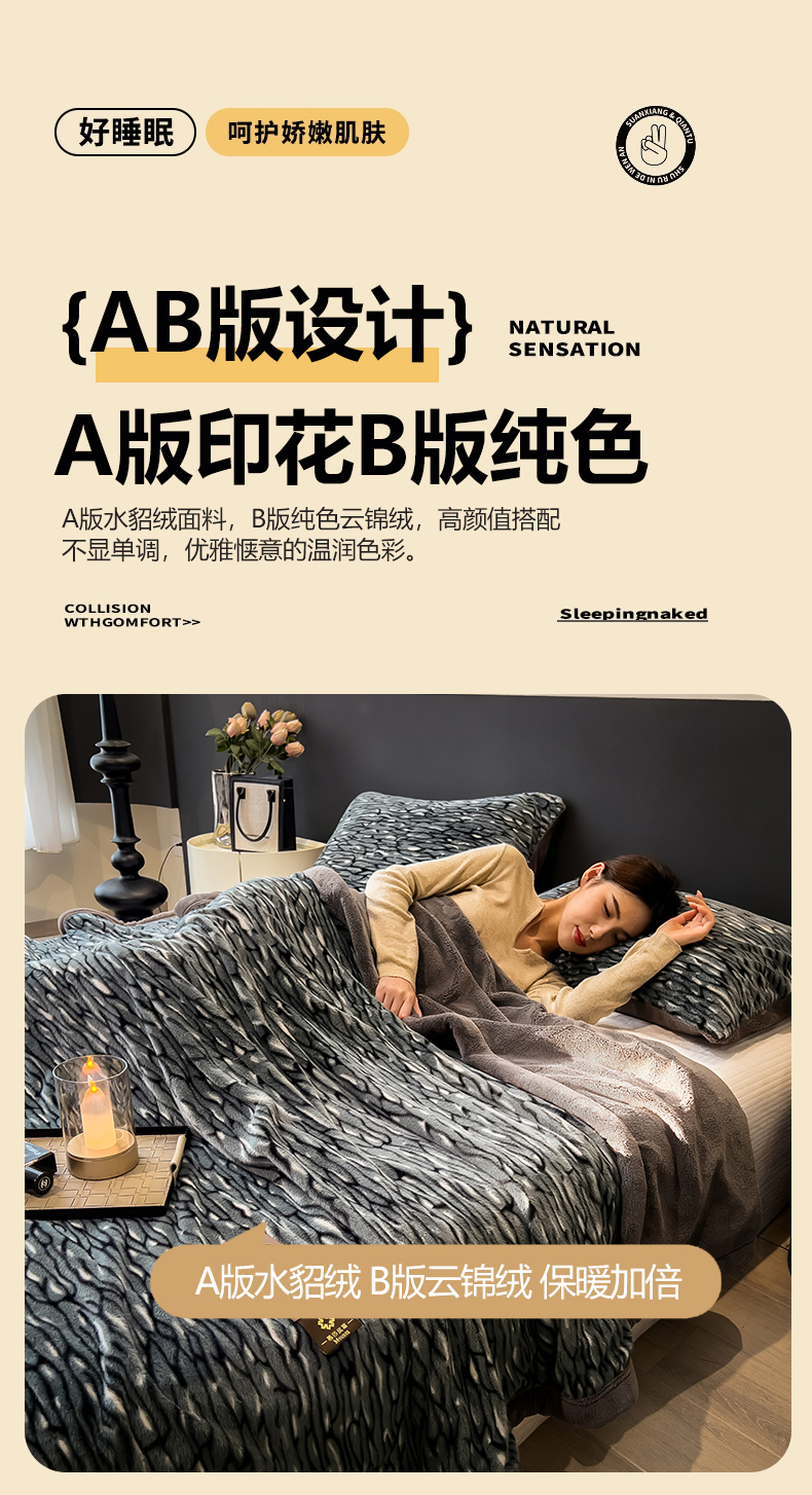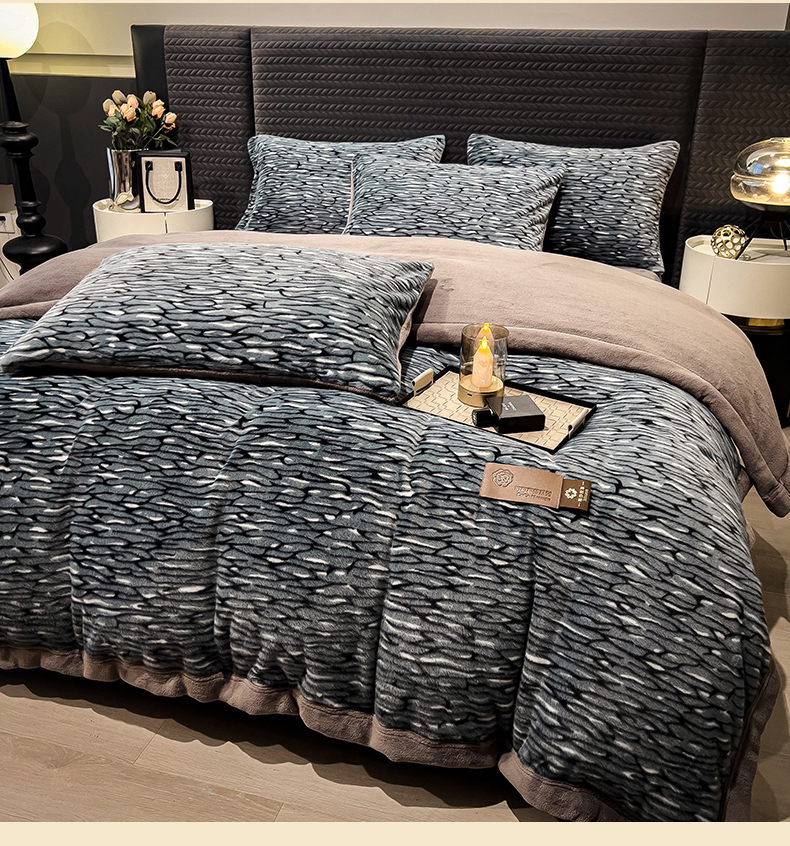 商品名称:慕木家纺 2025新款轻奢水貂四件套可可慕莎系列 可可慕莎-绮罗蓝灰
