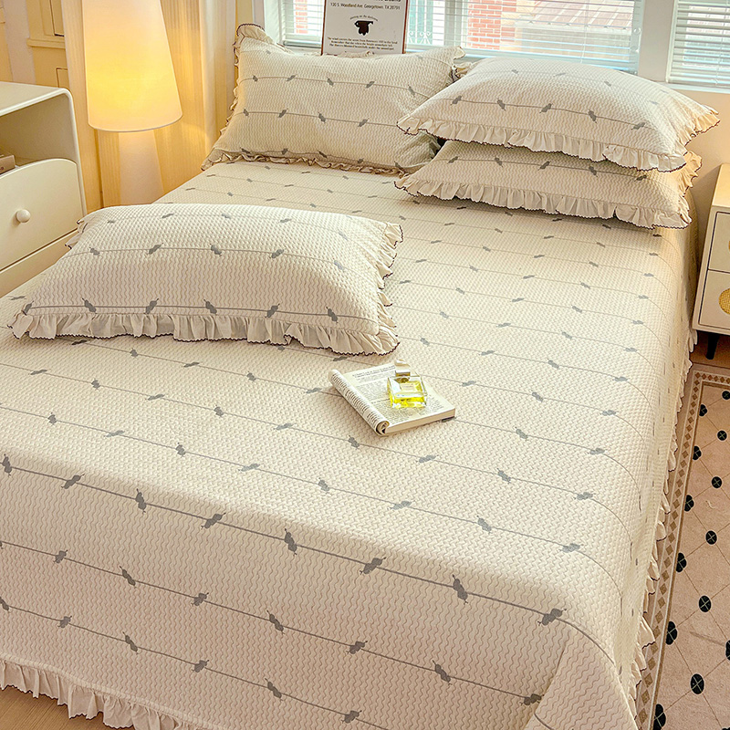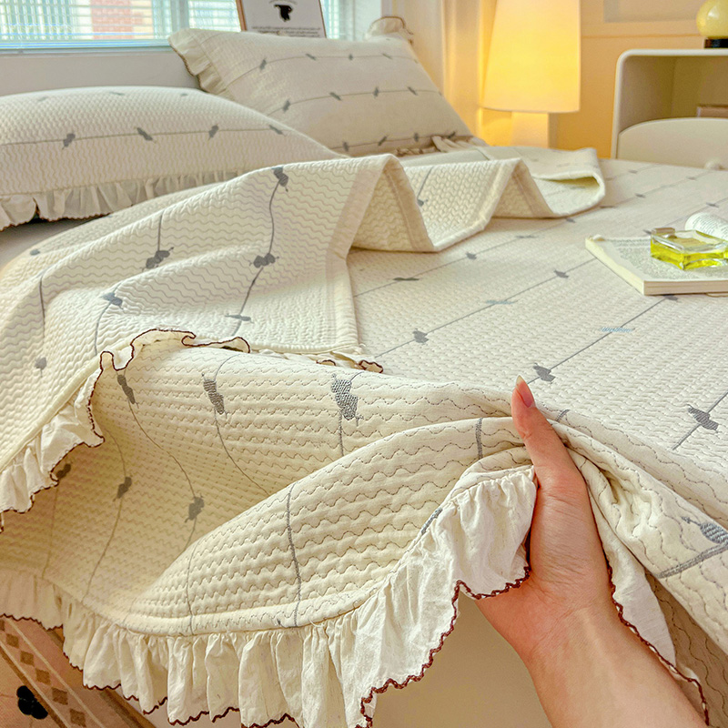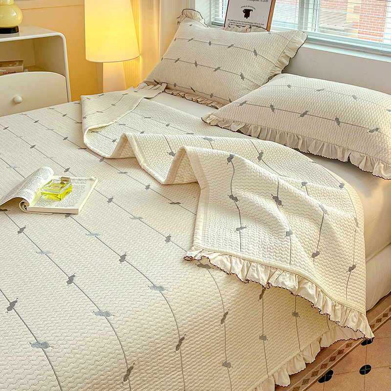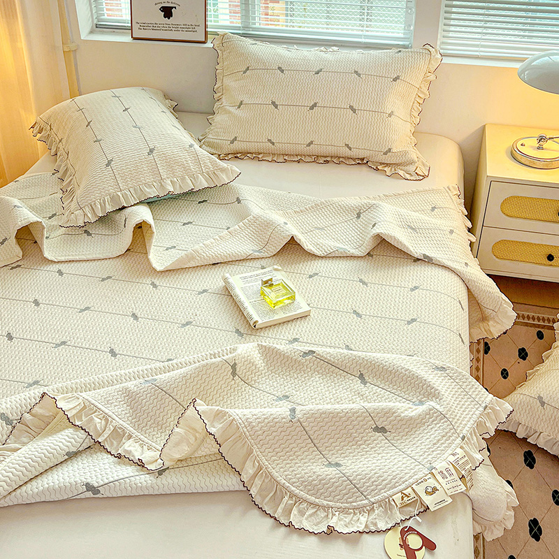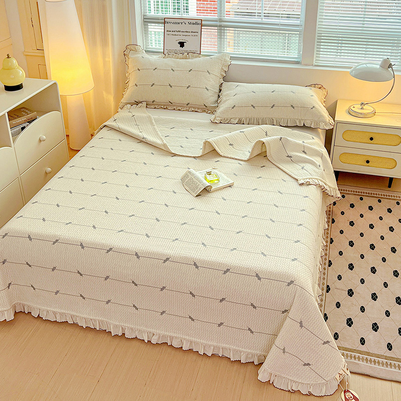 (总)源舜家纺 2025新款色织棉简约韩系花边床盖三件套,简约灰,简约粉,简约绿,简约驼,简约蓝