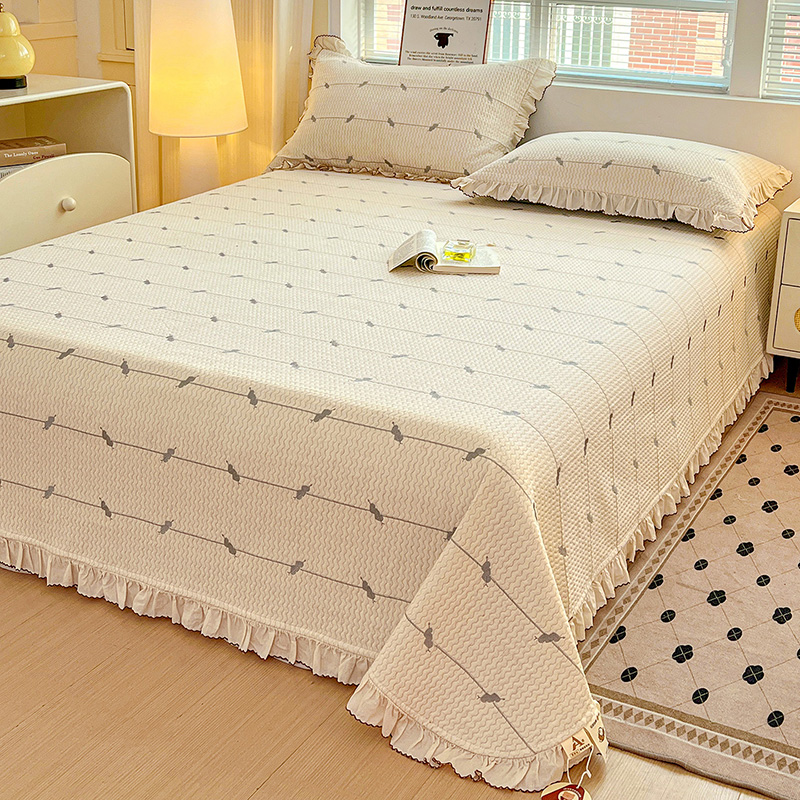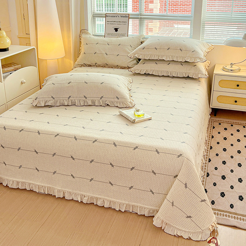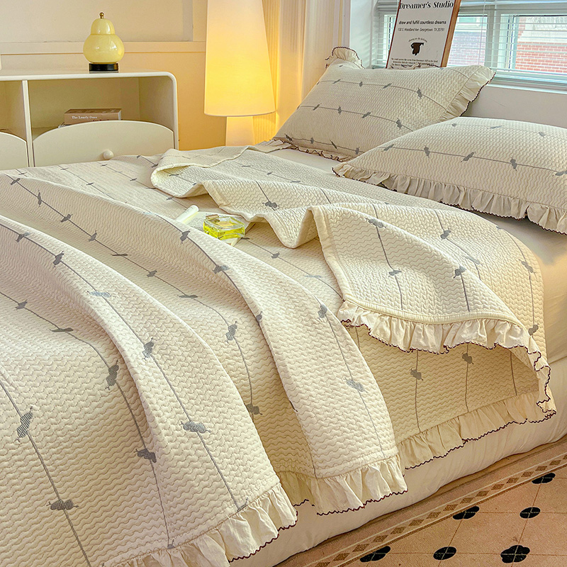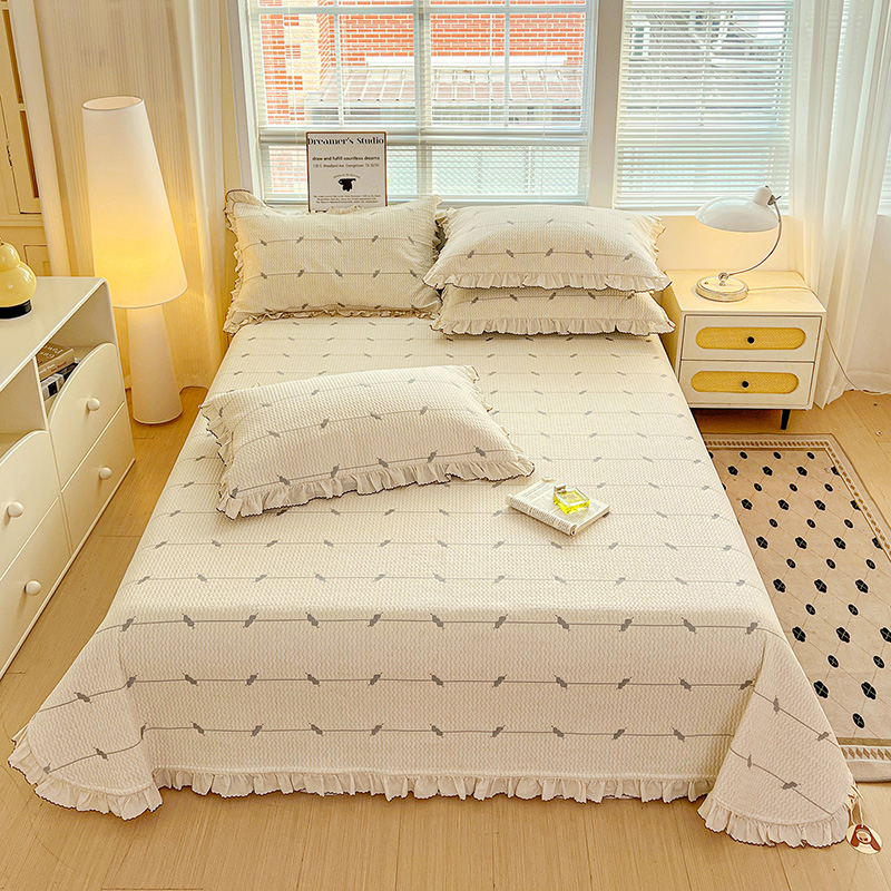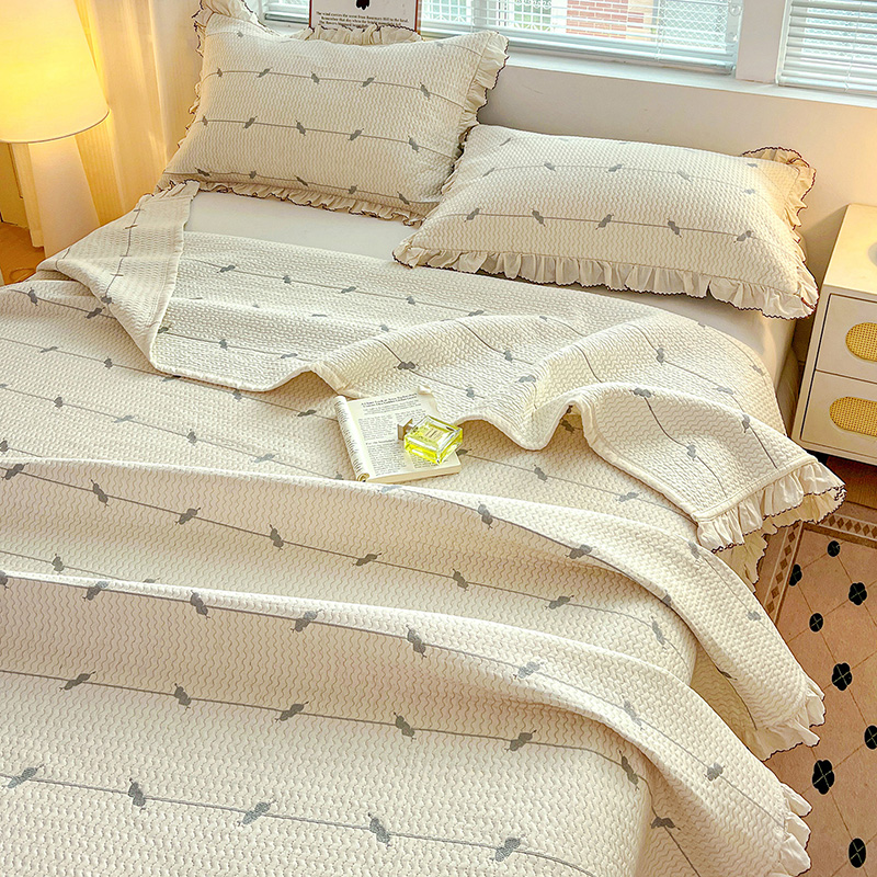 (总)源舜家纺 2025新款色织棉简约韩系花边床盖三件套,简约灰,简约粉,简约绿,简约驼,简约蓝