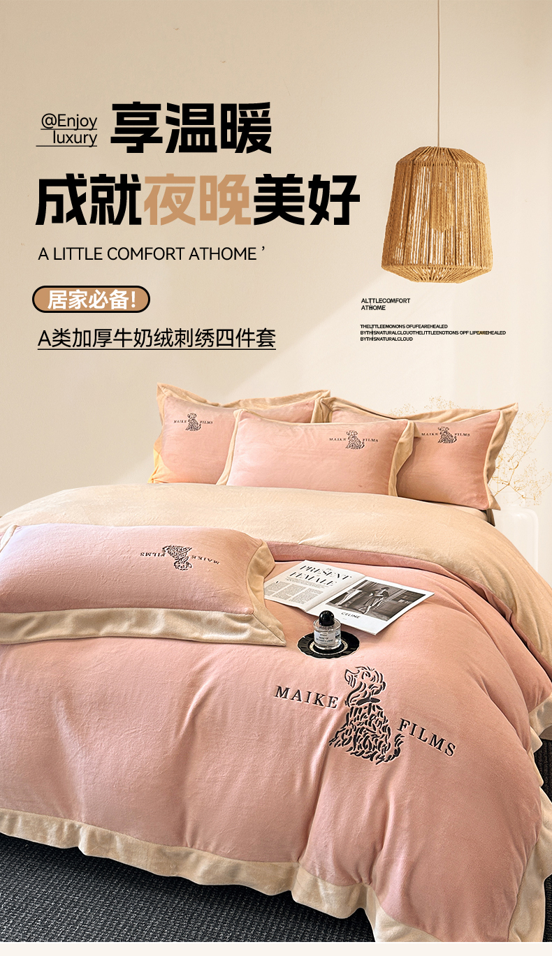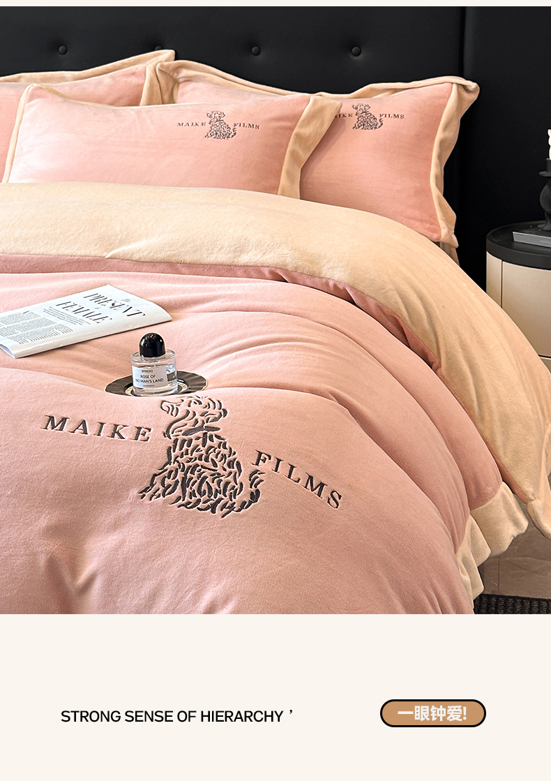 (总)眷恋家纺 2025新款牛奶绒加厚卡通刺绣四件套-旺仔