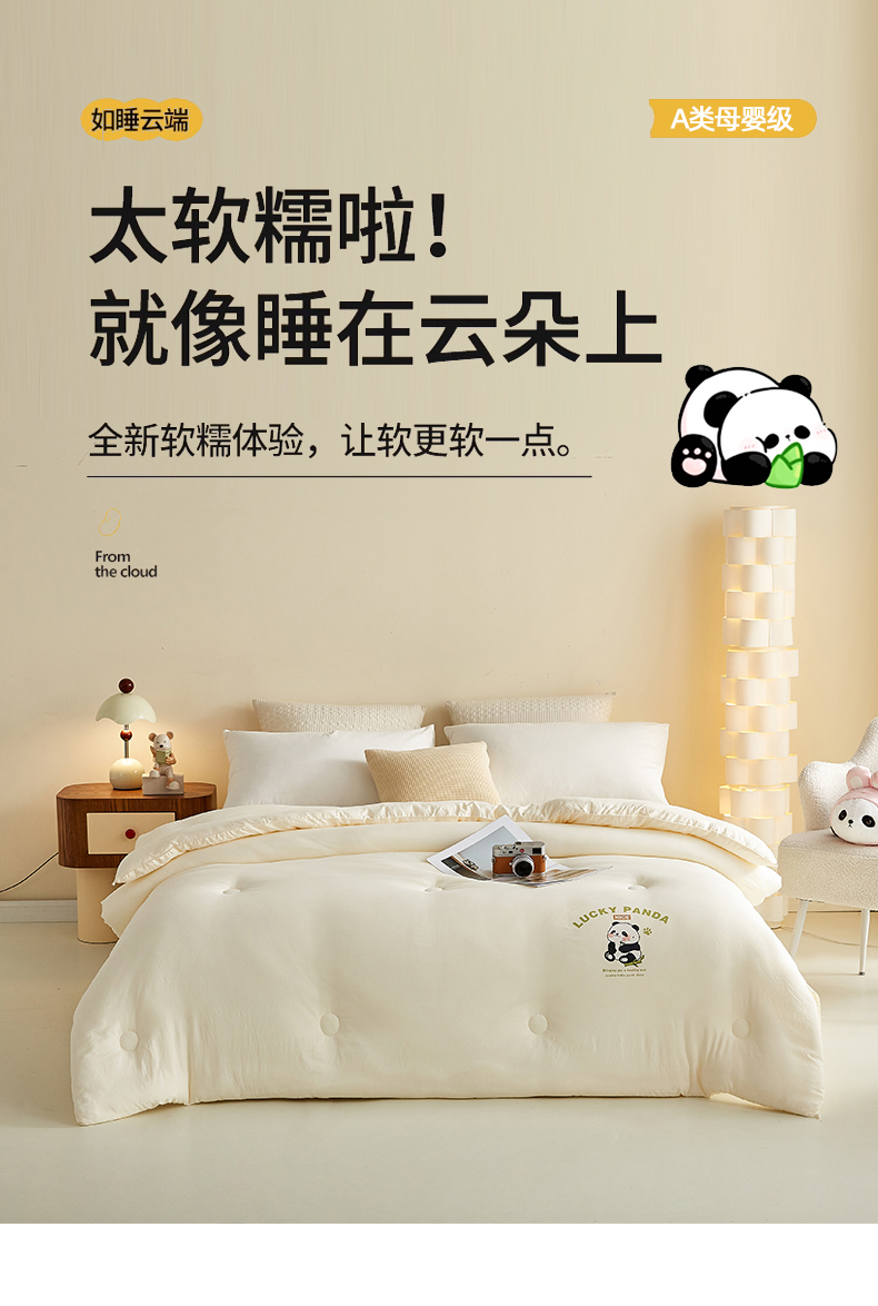 • 91家纺网 家纺一手货源 找家纺 帕芬鸟家纺 2025新款熊猫糯糯被子被芯 熊猫-粉色