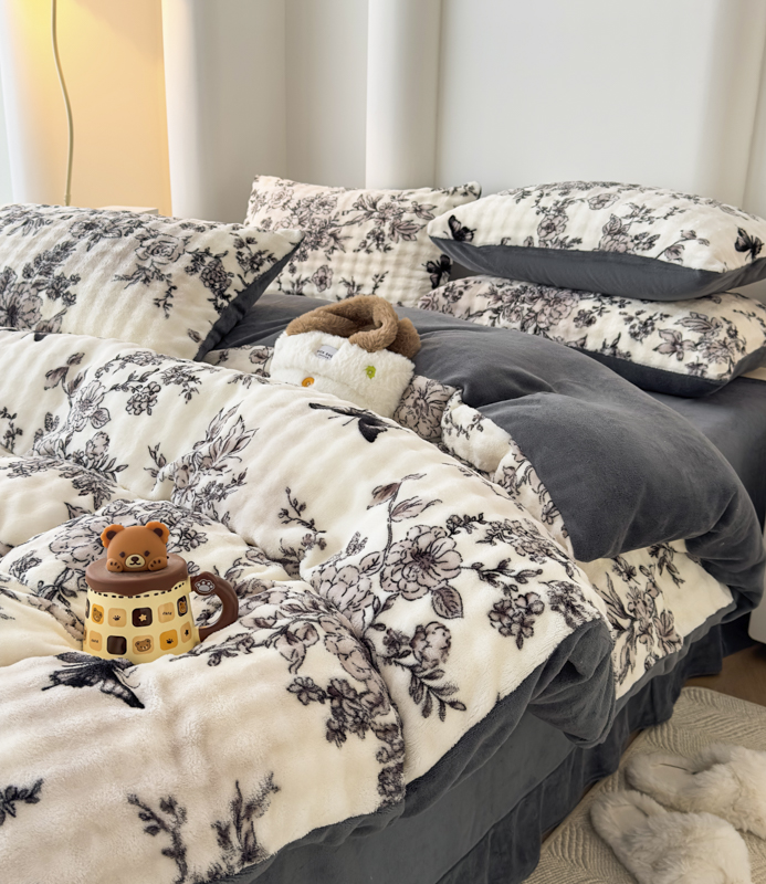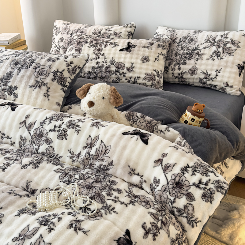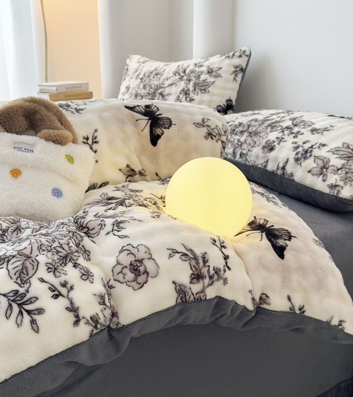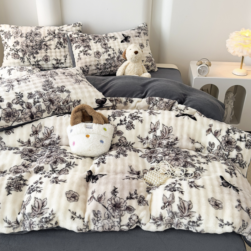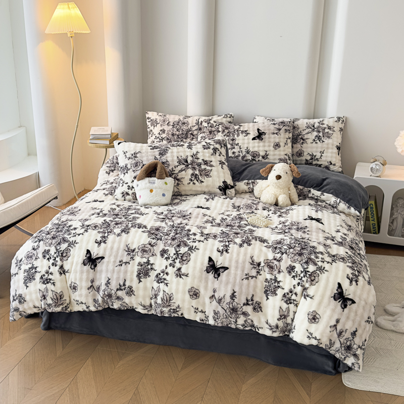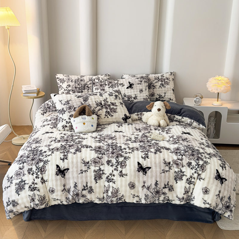 郝媳妇家纺 2025新款泡泡绒牛奶绒四件套 蝶恋花