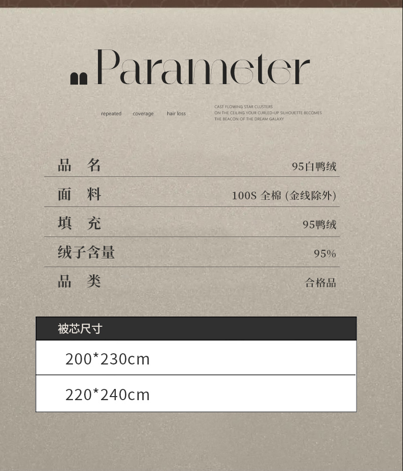 95白鸭绒220*240填充1300克秋冬被 | ¥1440.00 |