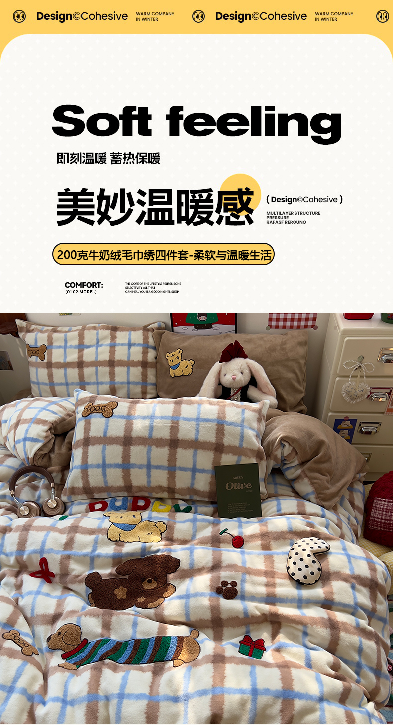 当前位置: 91家纺网 > 商品网购 > 床品套件 > 四件套 > 牛奶绒四件套 > 原素 2025秋冬加厚牛奶绒毛巾绣四件套 萌狗奶团-绒毛巾绣