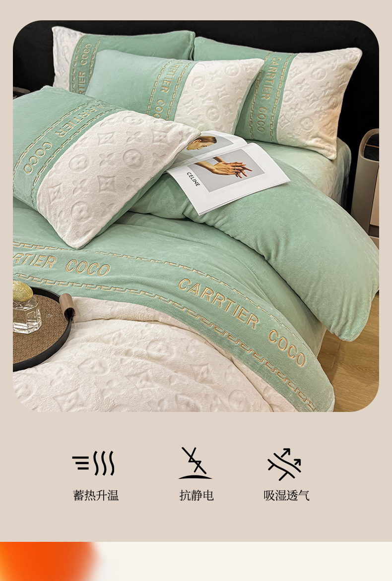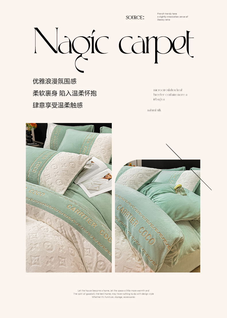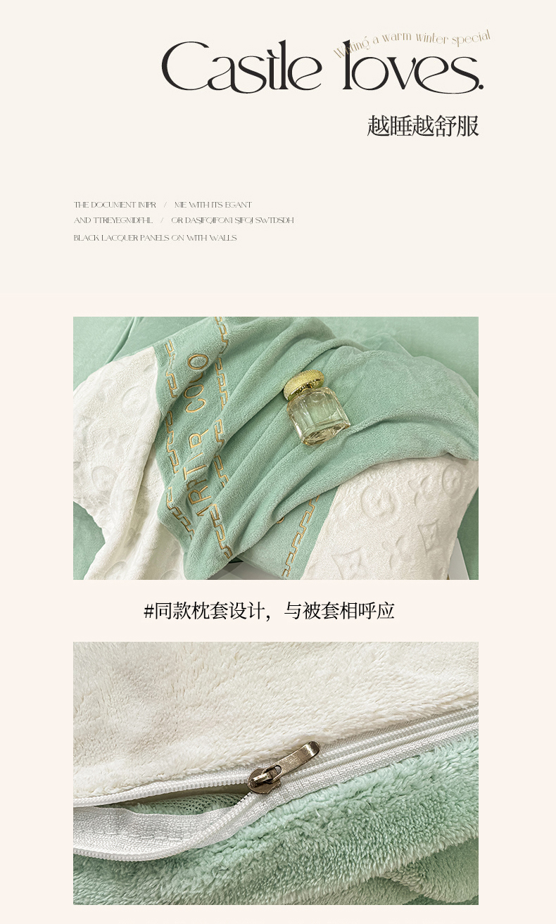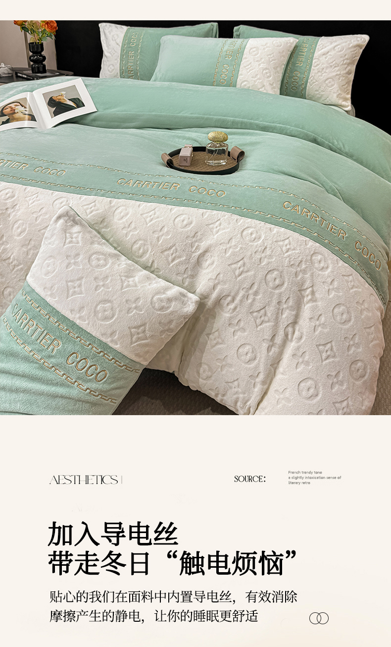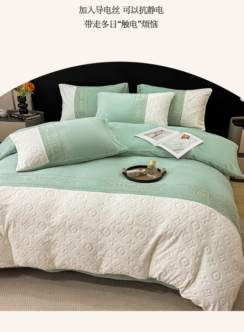 当前位置: 91家纺网 > 商品网购 > 床品套件 > 四件套 > 牛奶绒四件套 > 灰鲸 2025新款牛奶绒拼接刺绣雕花四件套-威登 威登-抹茶绿