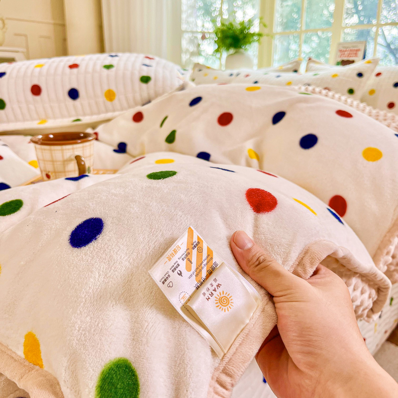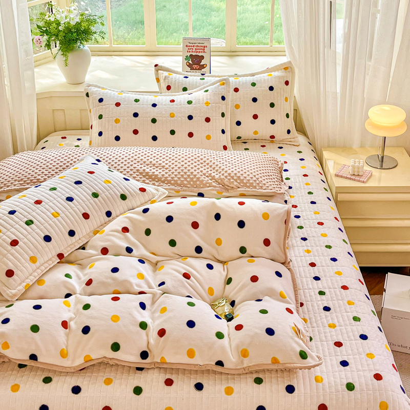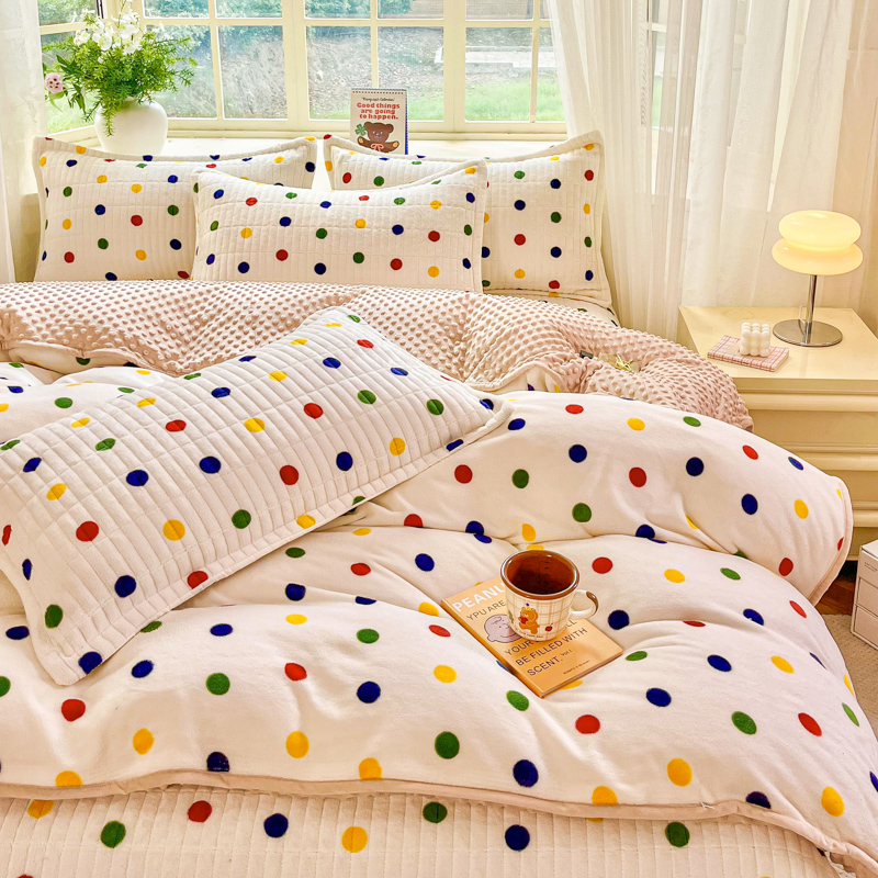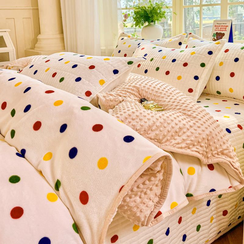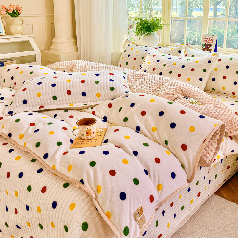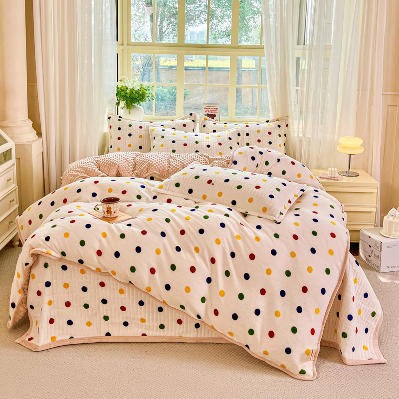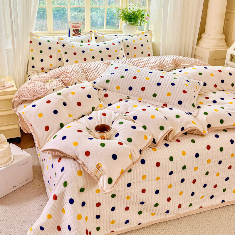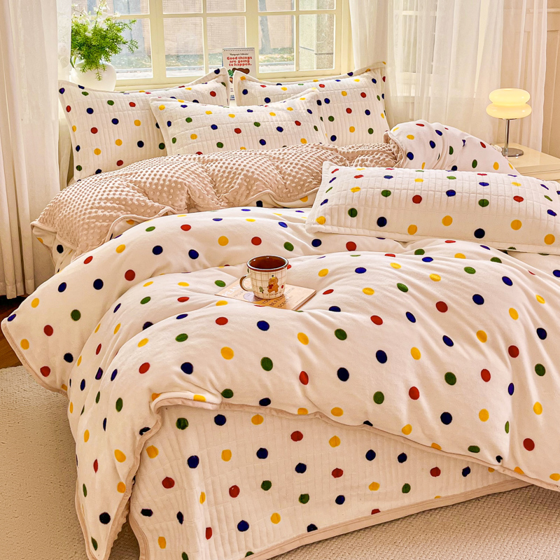 尚美家纺 2025冬季新品豆豆绒高克重床盖被套四件套 米彩色小波点
