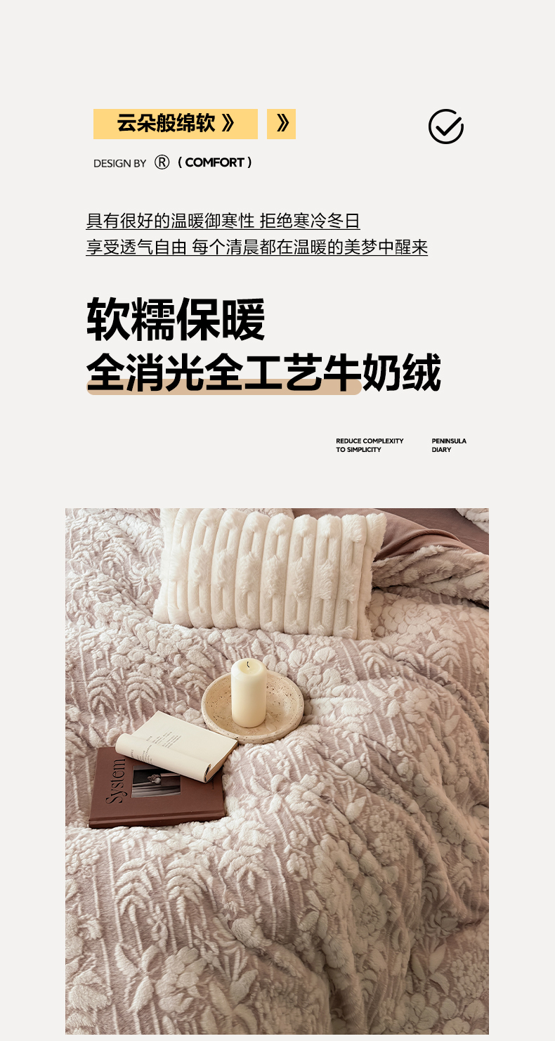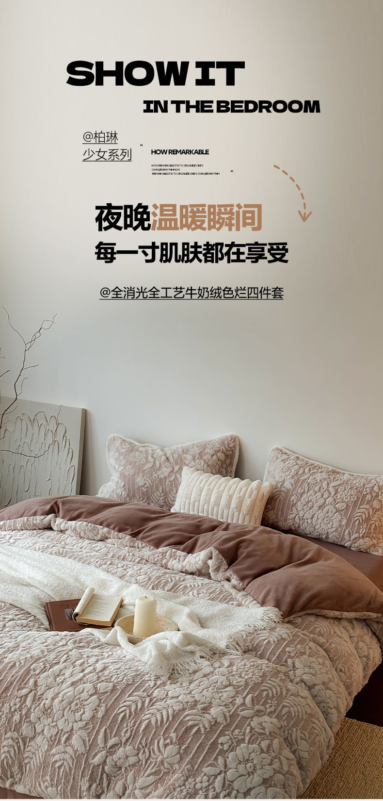 当前位置: 91家纺网 > 商品网购 > 床品套件 > 四件套 > 牛奶绒四件套 > 简纯主义 2025新款380g獭兔绒230g全消光全工艺牛奶绒四件套-椿晓 【控价】:日常店铺券后价格:258/328/348/328 椿晓咖