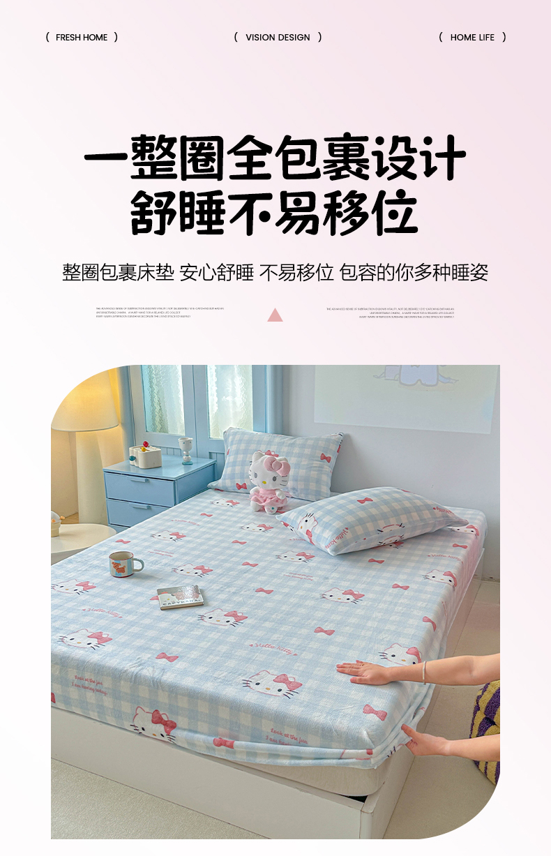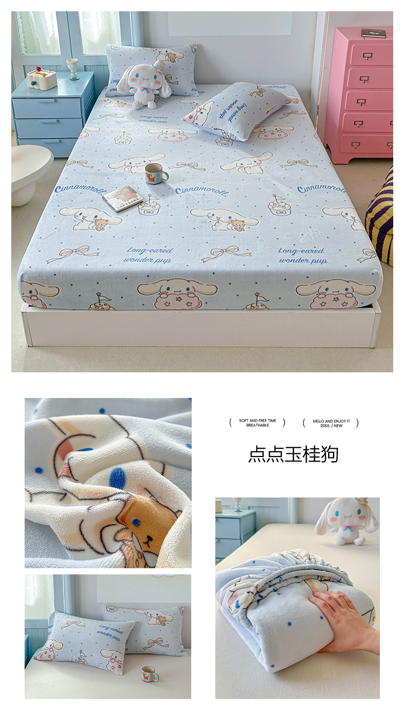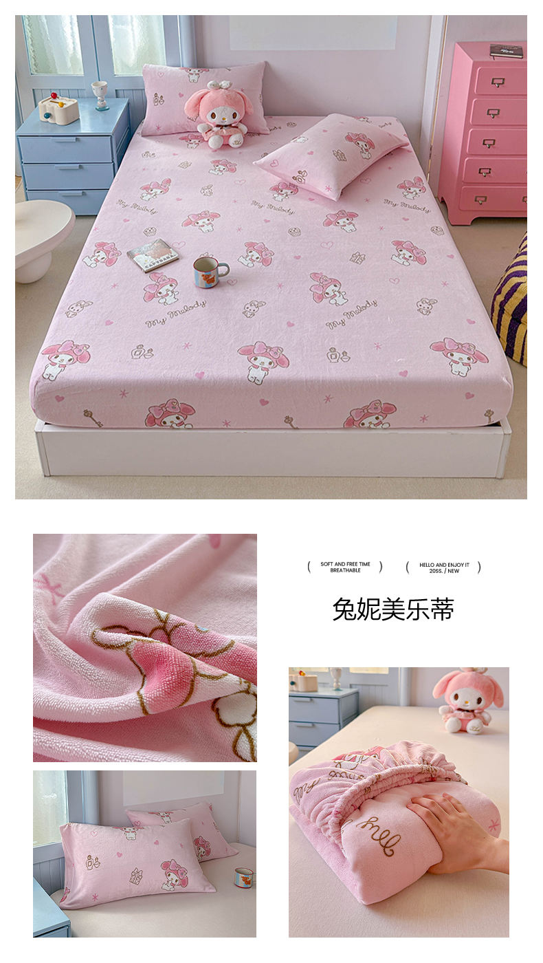 商品名称:(总)爱丽丝 2025新款正版授权三丽鸥牛奶绒单品床笠枕套