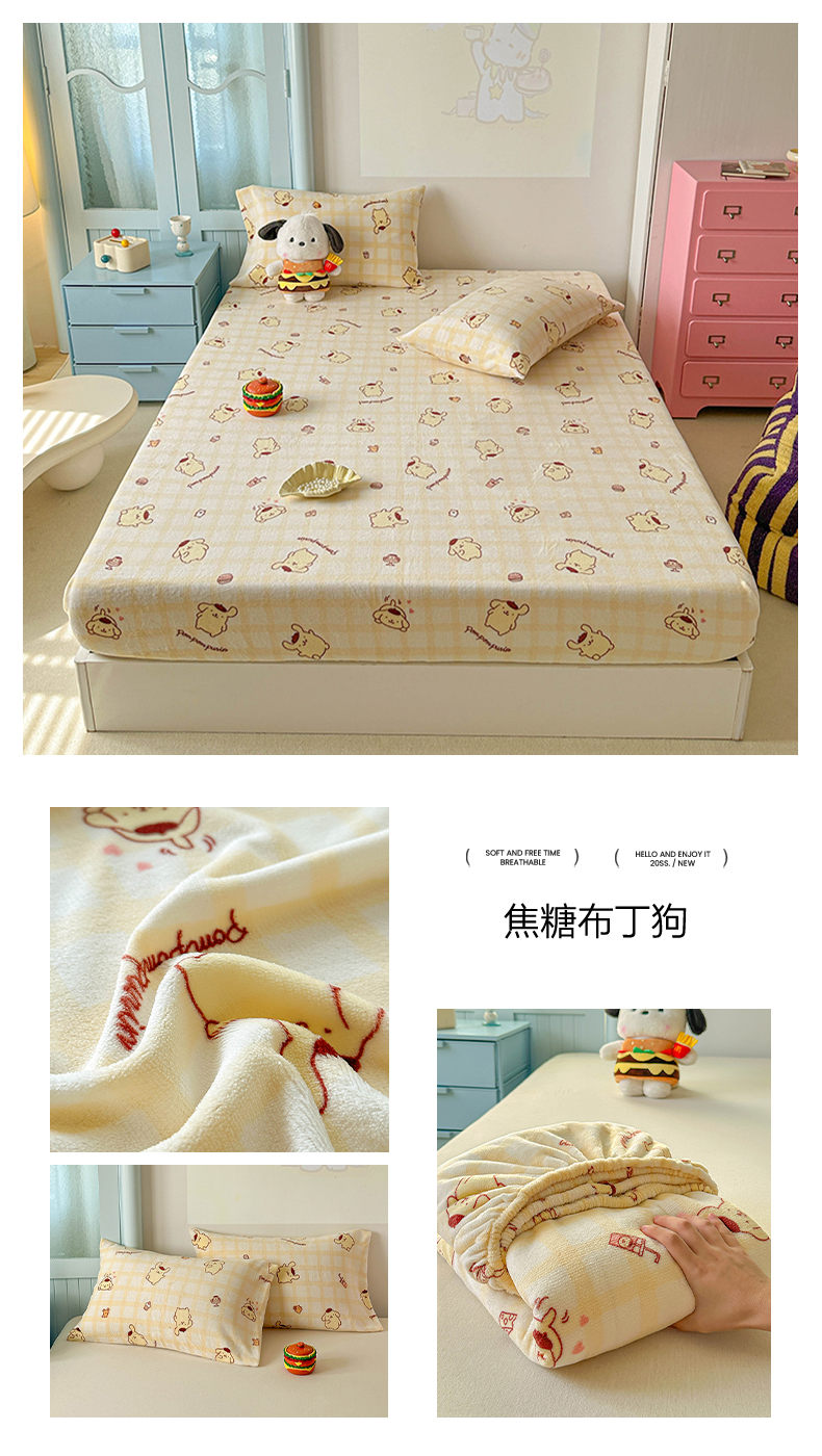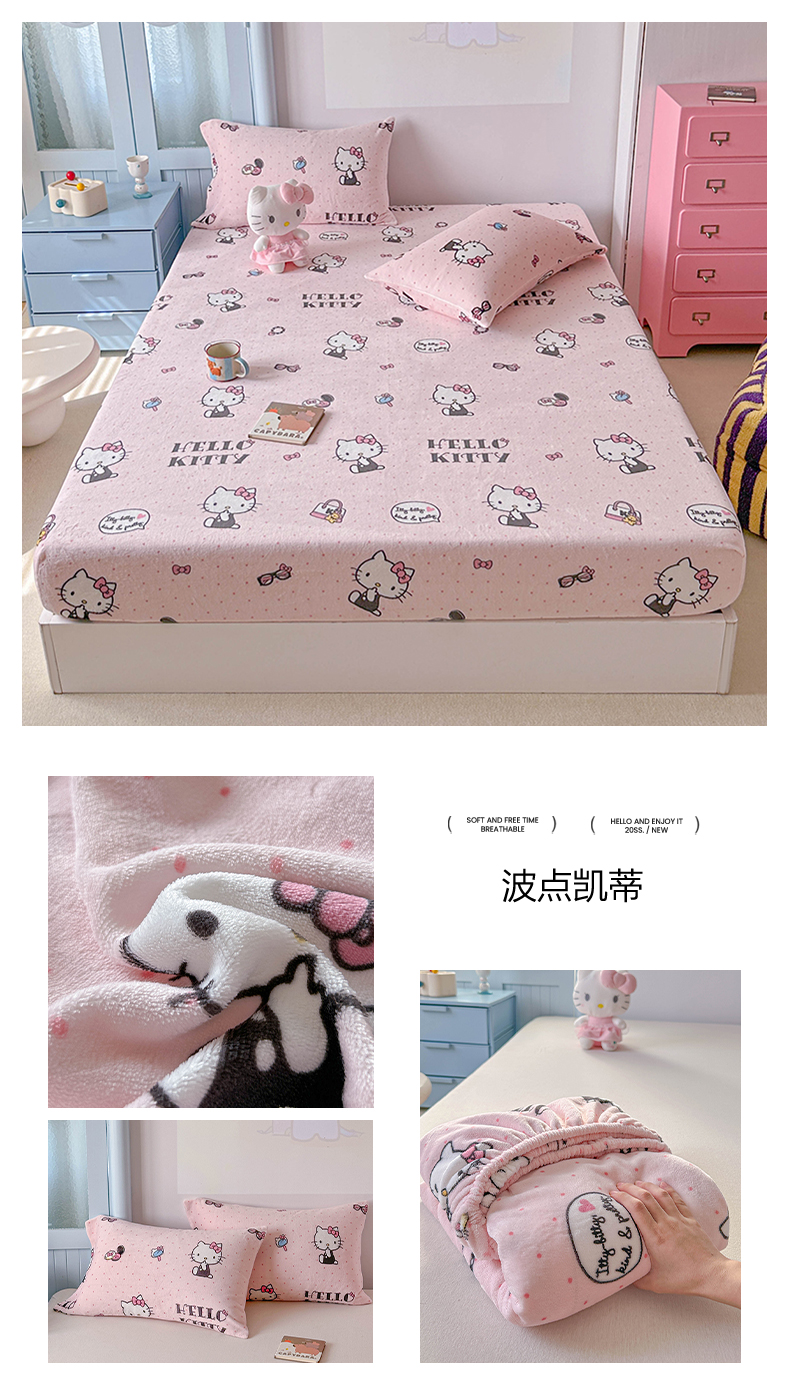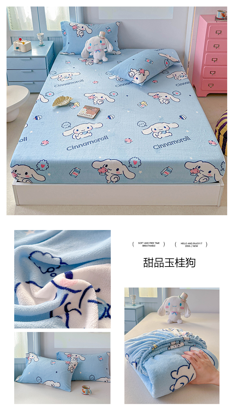 商品名称:爱丽丝 2025新款正版授权三丽鸥牛奶绒单品床笠枕套 兔妮美乐蒂