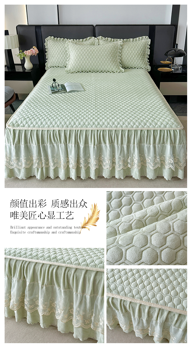• 91家纺网 家纺一手货源 找家纺 董韵家纺 2025新款牛奶绒刺绣夹棉床裙三件套系列(控价) 绒语-青霭