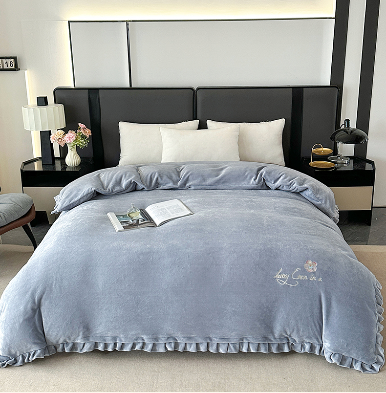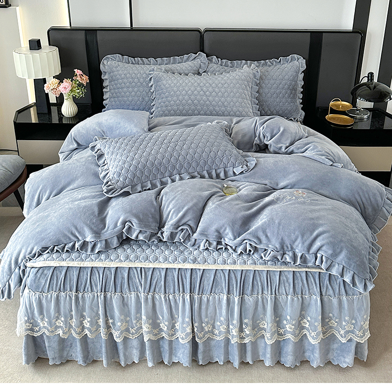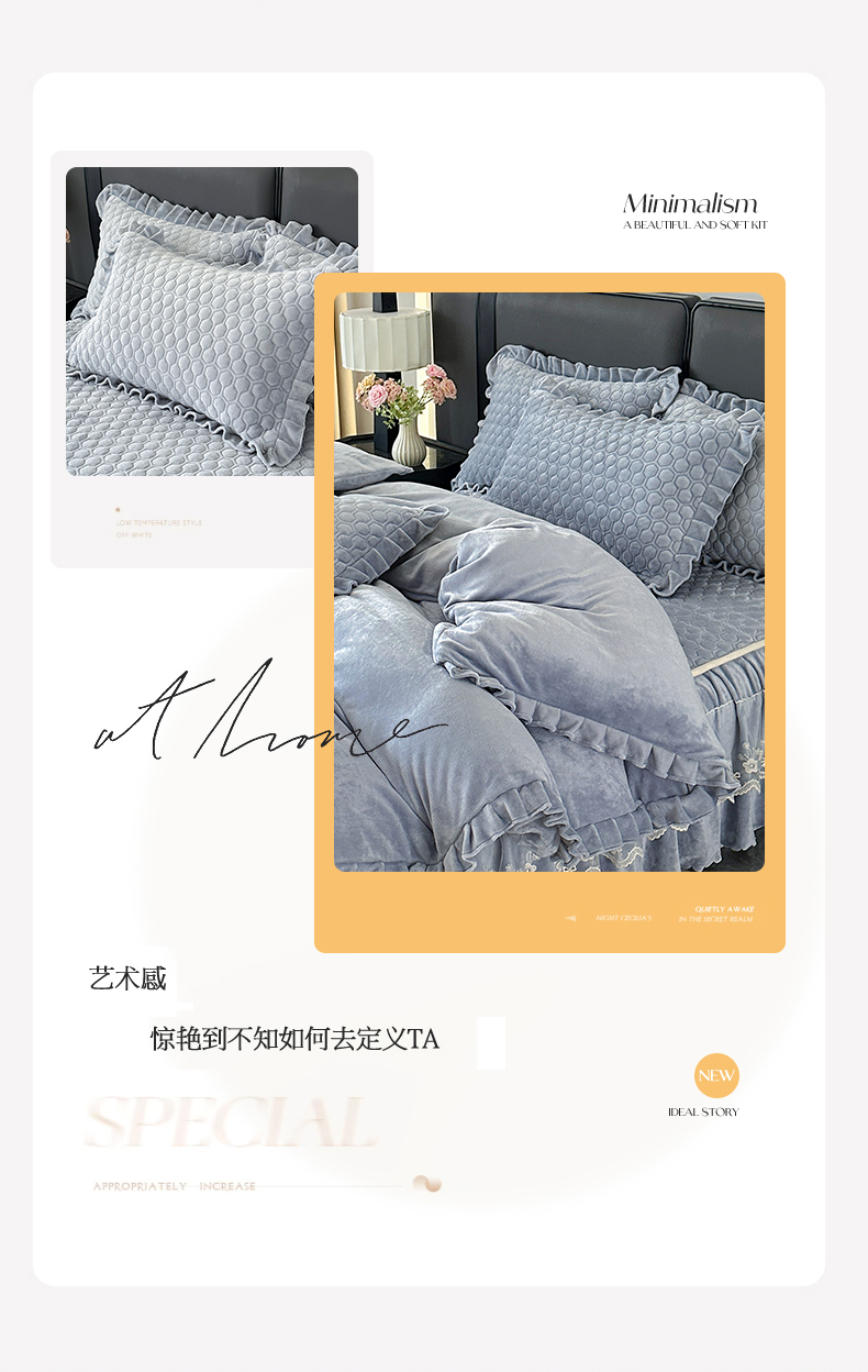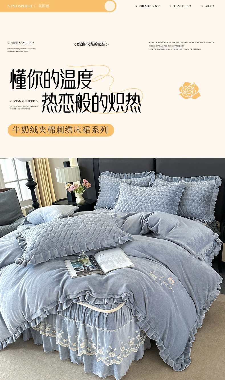 董韵家纺 2025新款牛奶绒刺绣夹棉床裙四件套系列(控价) 丝语-云烟灰