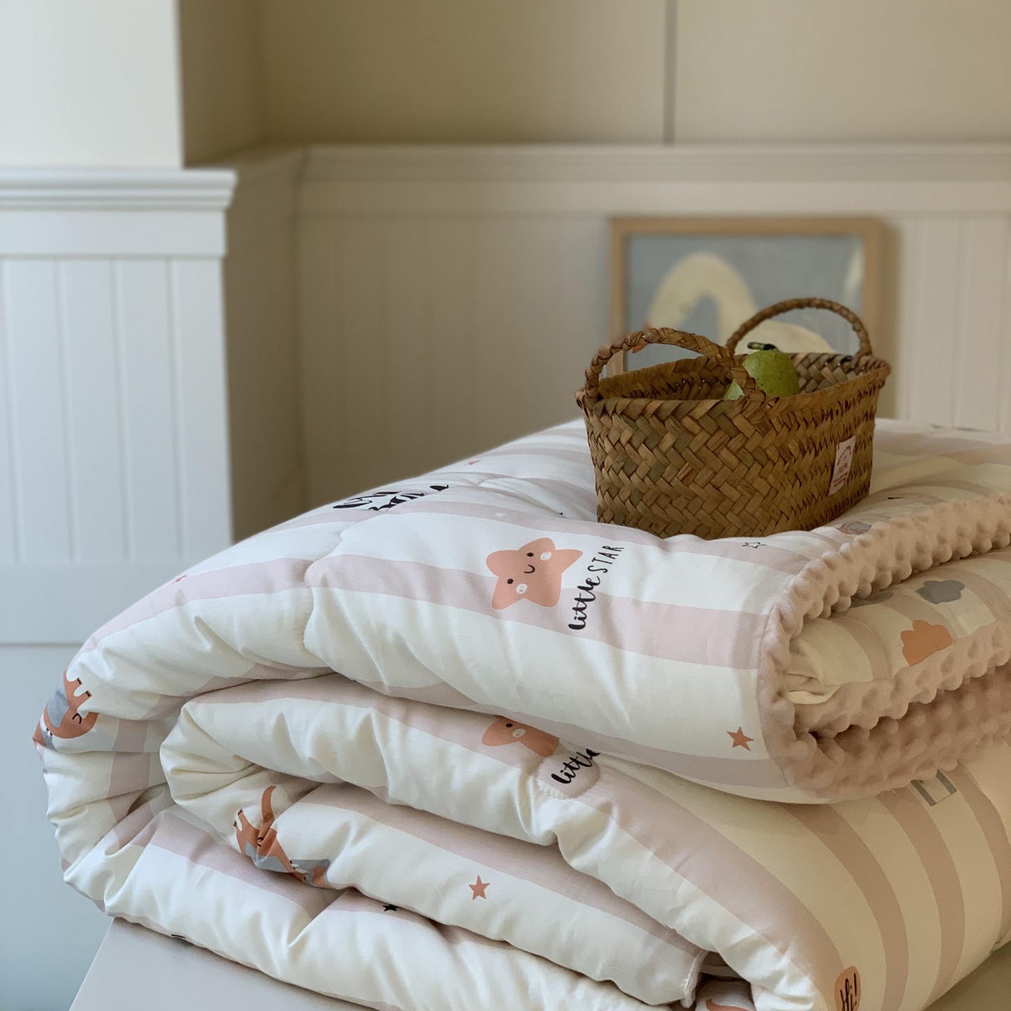 (总)汇庭 2025新款秋冬胖胖樱桃春秋被+樱桃菲菲床盖三件套,组合图下单仅供展示不可下单,粉色,绿色,米色