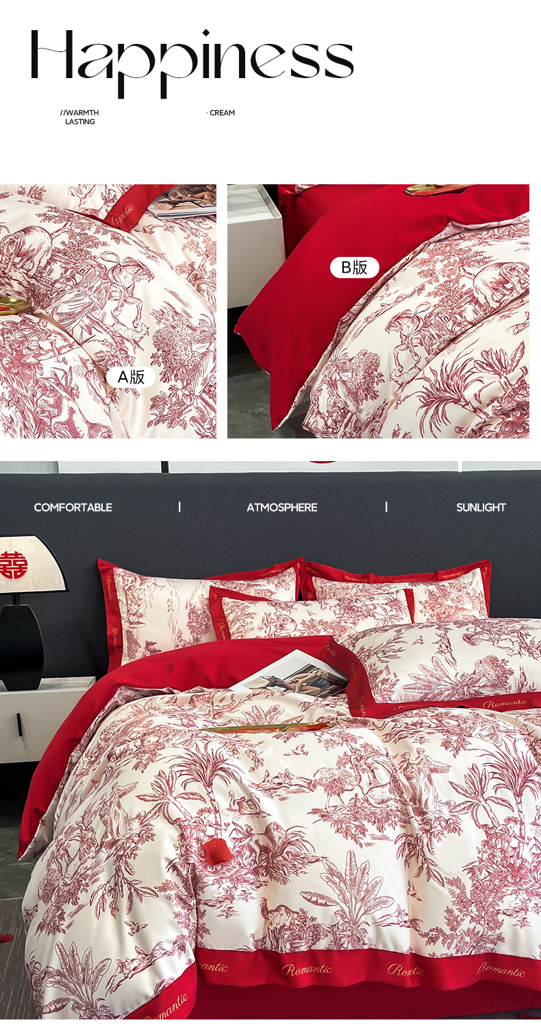 商品名称:花愿 2025新款婚庆大版印花四件套 幸福之约