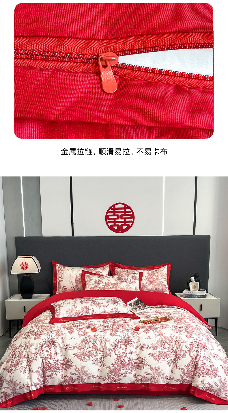 (总)花愿(原花纪) 2025新款婚庆刺绣四件套(礼盒款),浪漫花园-红,浪漫一生,龙凤呈祥,满心欢喜,天赐良缘,喜气洋洋,祥瑞,喜结良缘