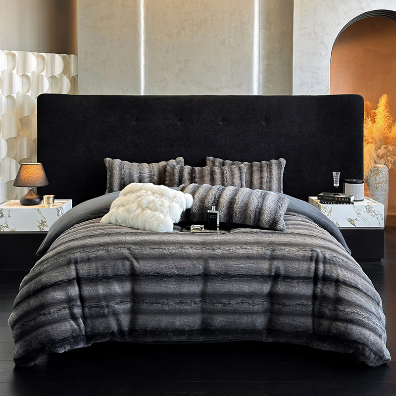 若未家居 LOVEWE HOUSE 2025新款丹麦貂A版350克B版220克全消光牛奶绒简约高级感皮草绒四件套-龙猫(控价券后不低于298) 龙猫-渐灰