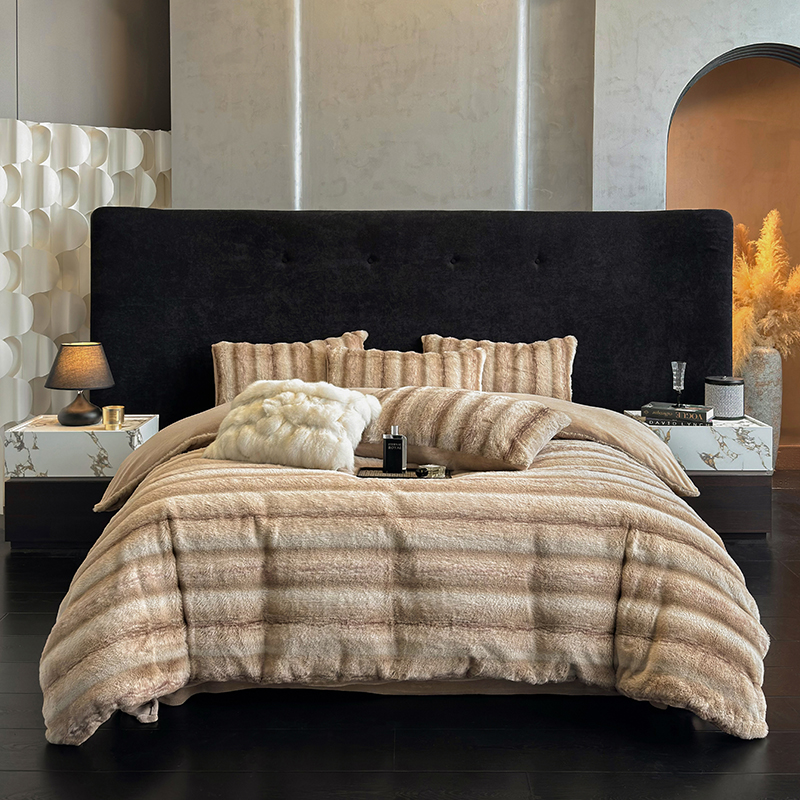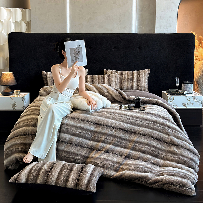 (总)若未家居 LOVEWE HOUSE 2025新款轻奢意式风仿真貂绒床盖四件套A版400克B版260克-北国雪乡,北国雪乡 暗夜灰,北国雪乡 咖,北国雪乡 驼