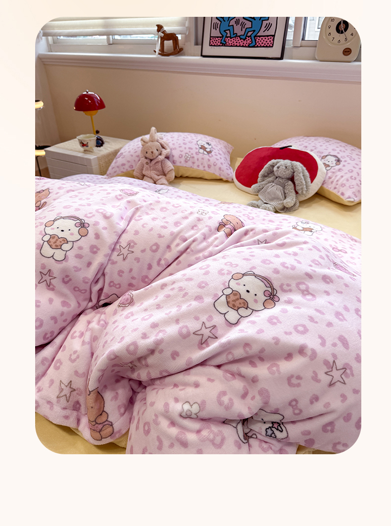 (总)呗旺鹿 2025新款A版全棉B版牛奶绒四件套,冰岛小马,萌星,糖果小马,小狗笔记,费尔岛小熊