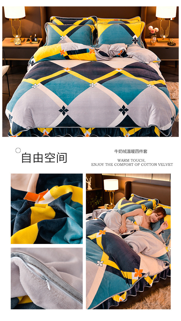 商品名称:韩秀家纺 2025新8.5-9.5斤牛奶绒床裙四件套法兰绒加厚抗静电超柔230克加厚 自由空间