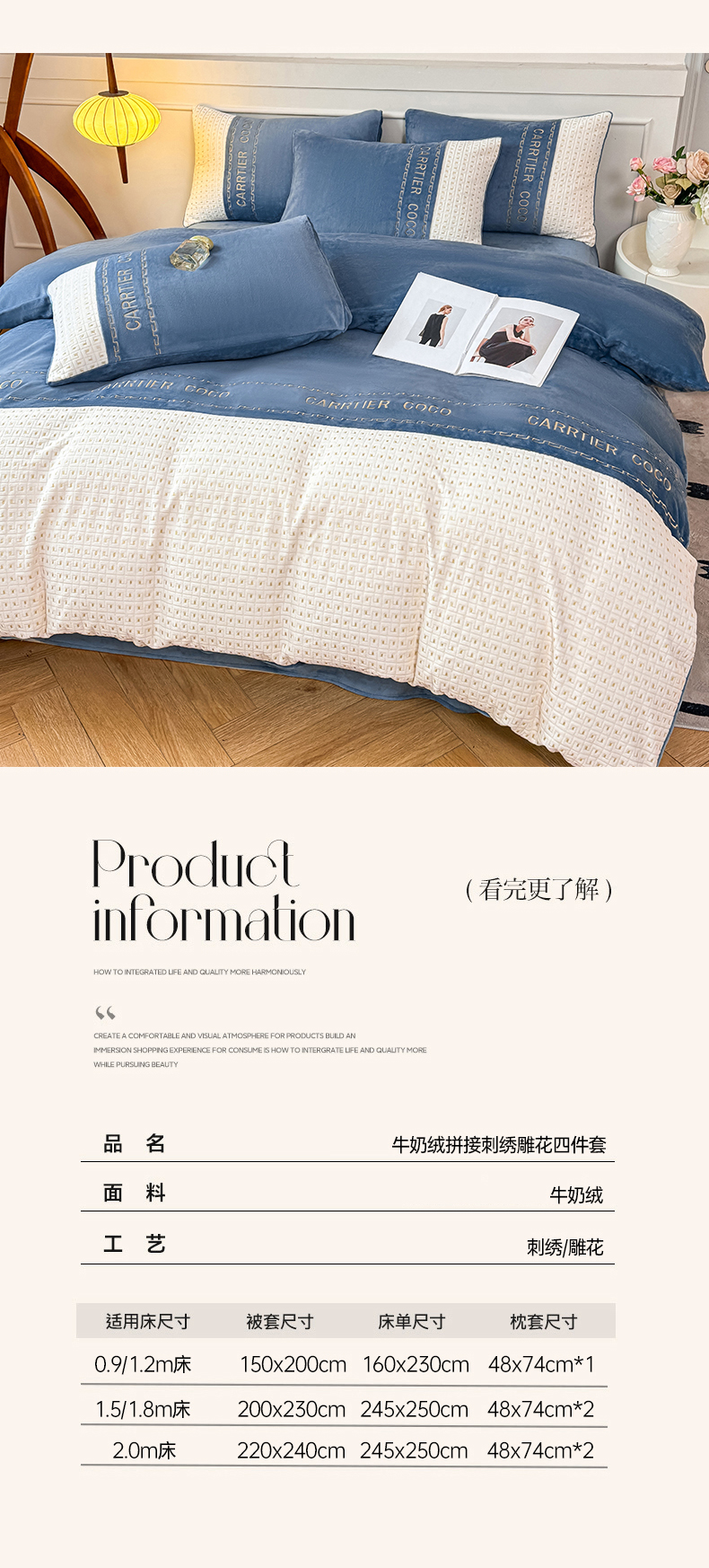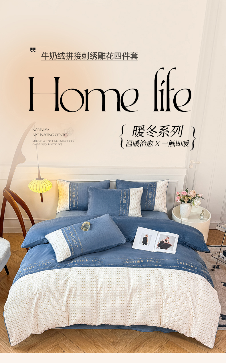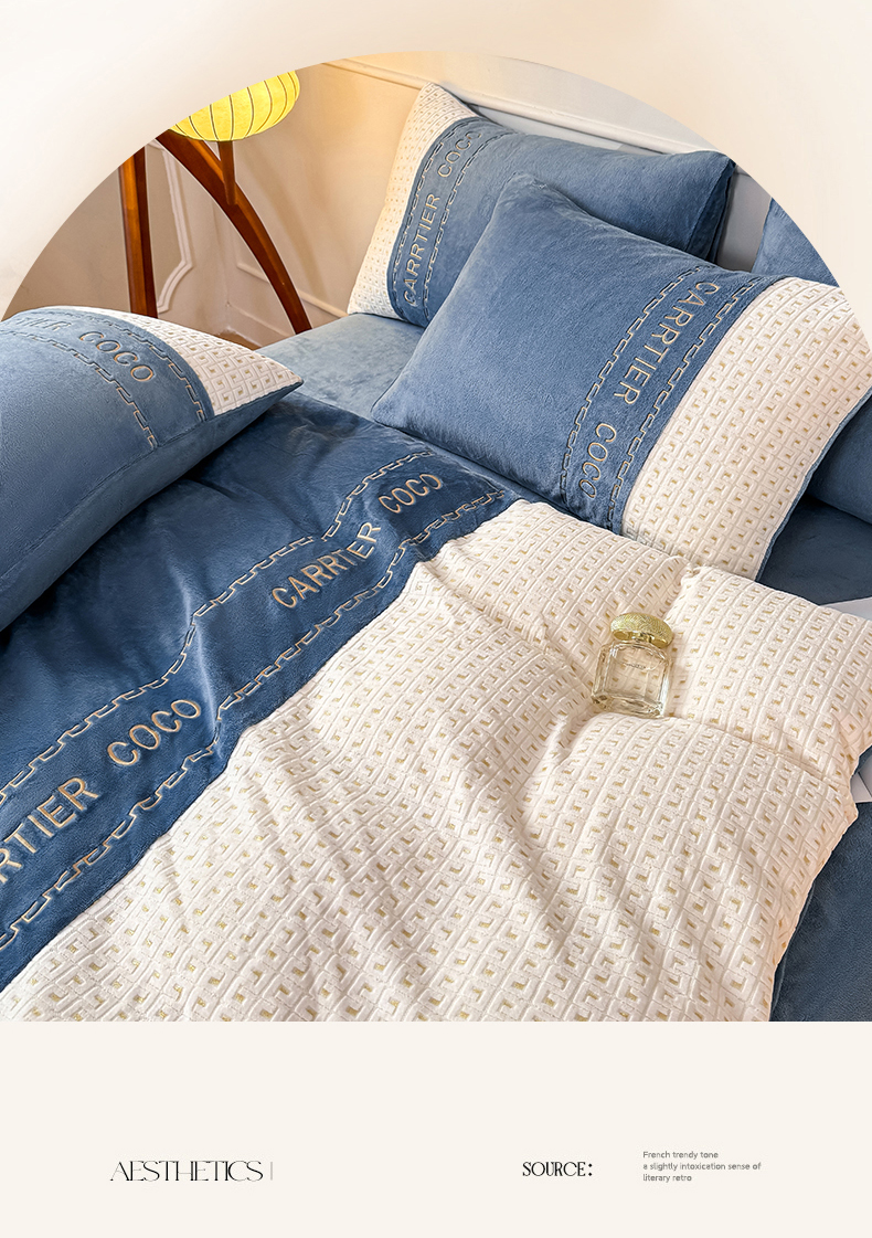当前位置: 91家纺网 > 商品网购 > 床品套件 > 四件套 > 牛奶绒四件套 > 灰鲸 2025新款牛奶绒刺绣拼接款四件套-威廉 威廉-宾利蓝