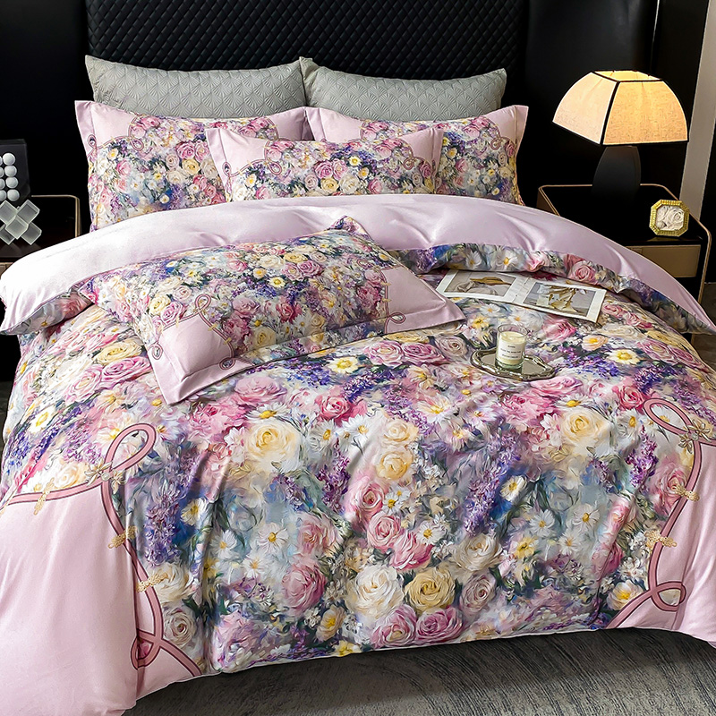 (总)大麦乐田 2025新款珍珠棉大版印花四件套,境澜-玉,若芸-紫,境澜-灰,花涧-粉,境涧-紫,芳华-紫,若芸-粉,芳华-黄,花涧-桔,梦谷-粉,梦谷-绿