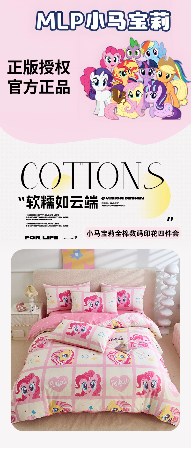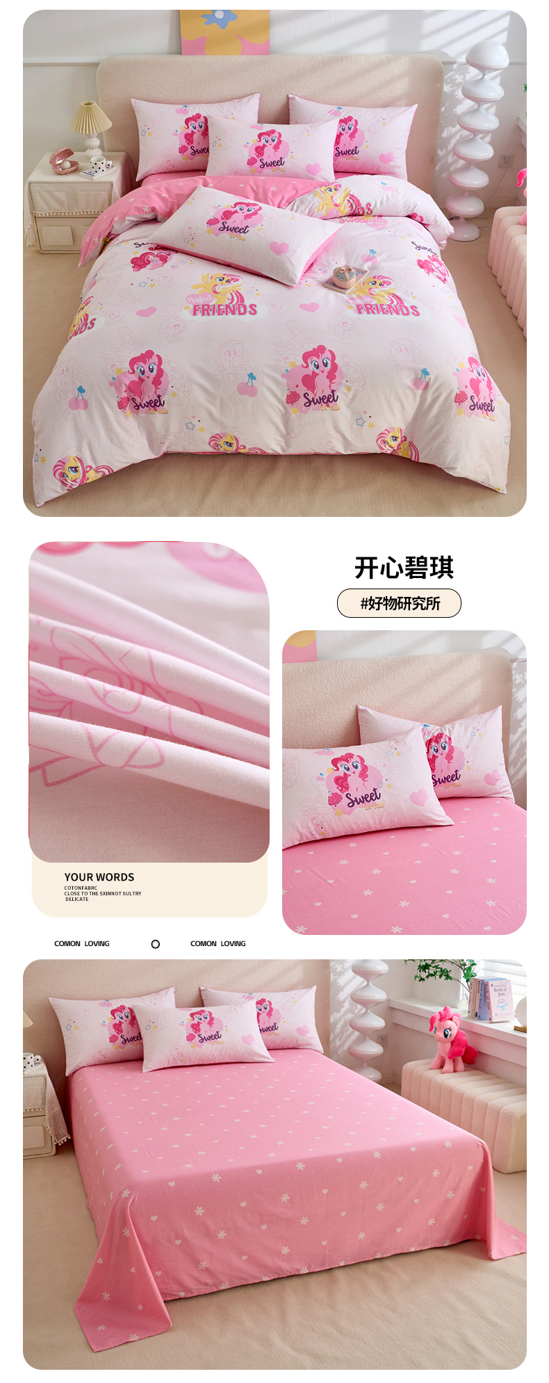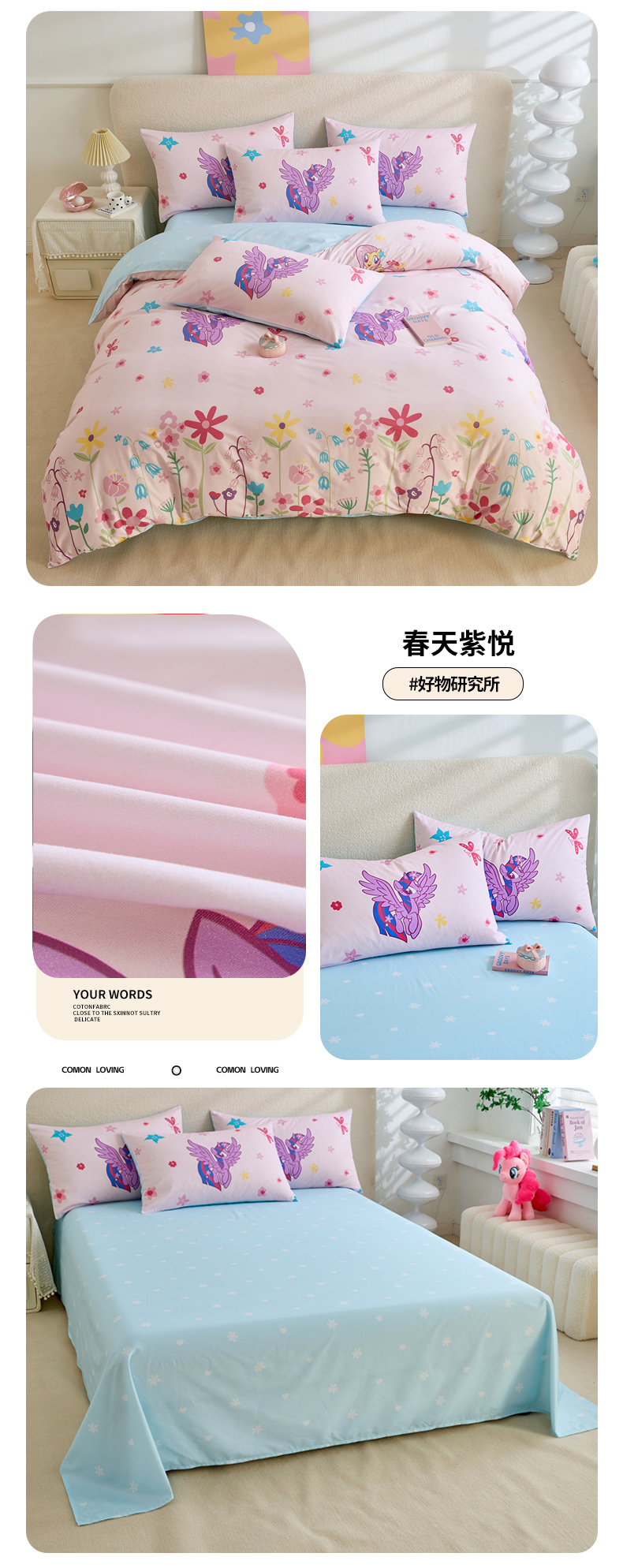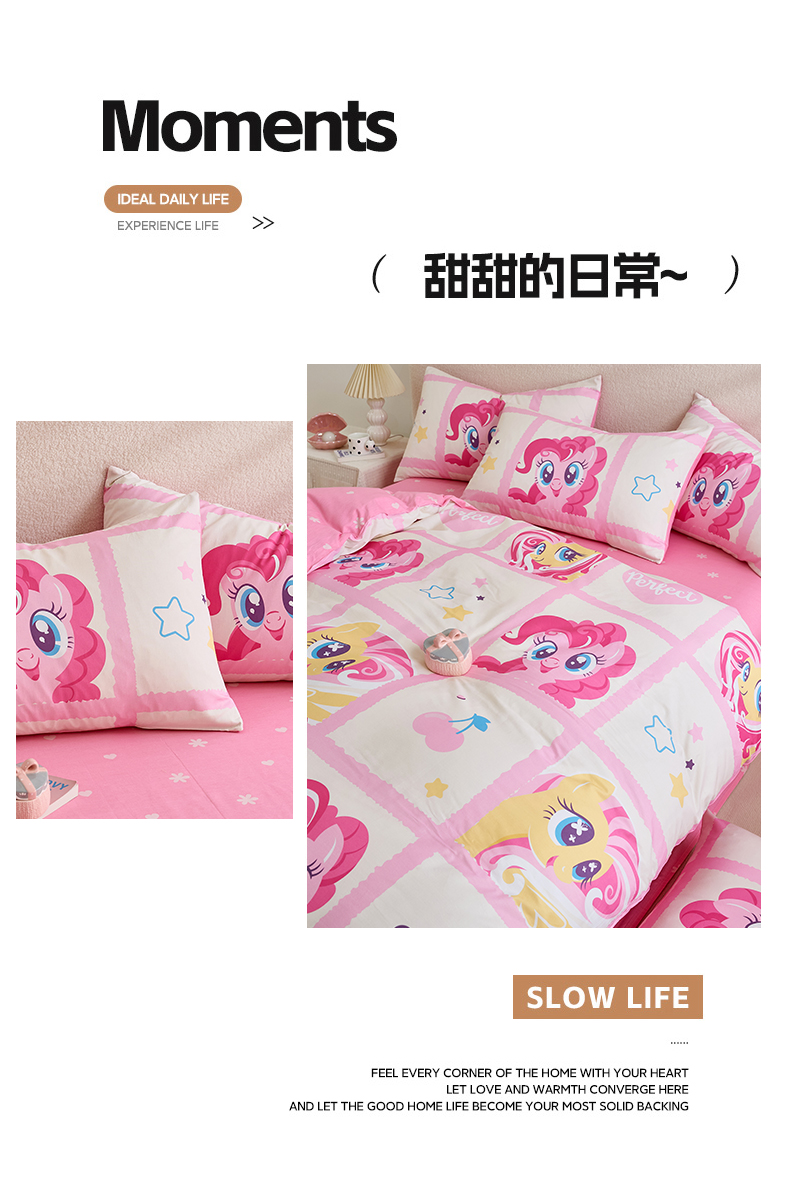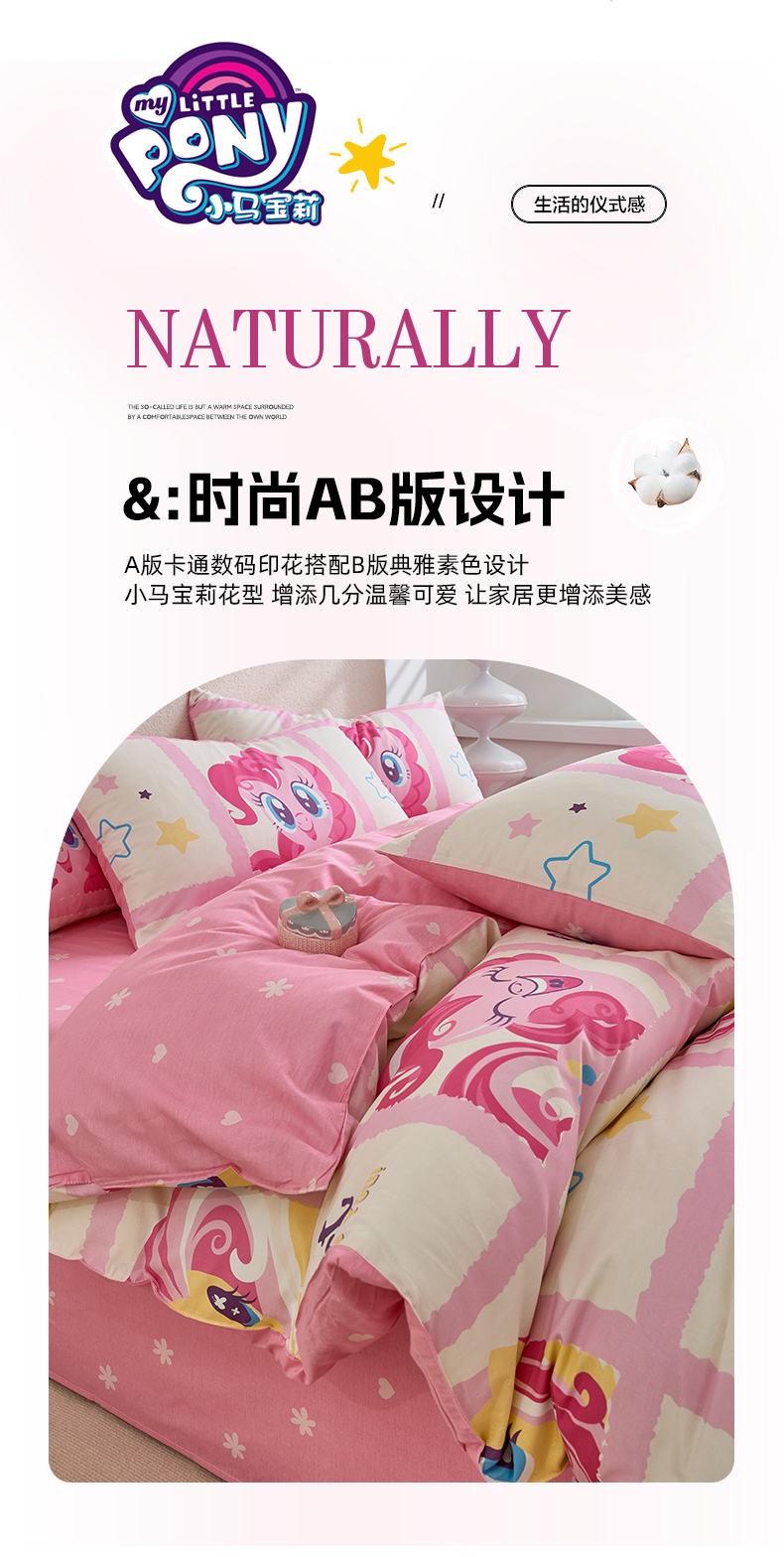当前位置: 91家纺网 > 商品网购 > 床品套件 > 四件套 > 全棉普通四件套 > 百利卡通(原迪士尼家纺) 2025新款小马宝莉全棉纯棉数码印花圆网四件套 格子小马