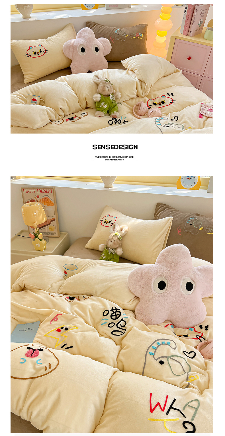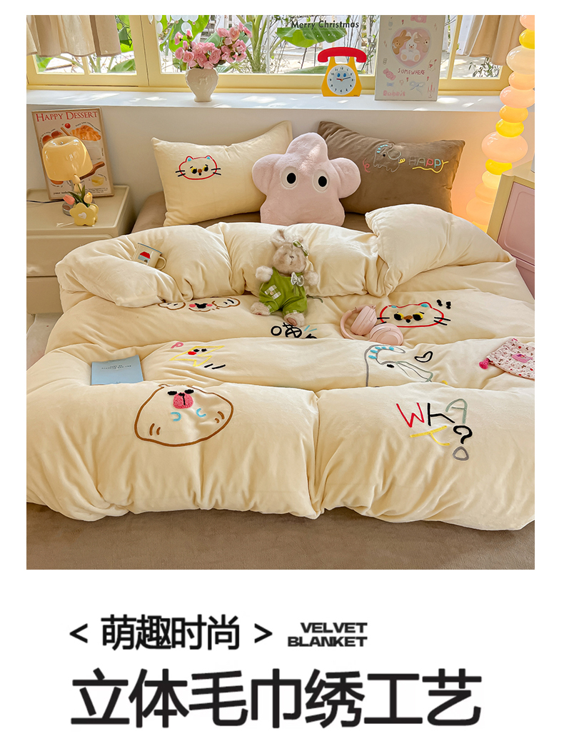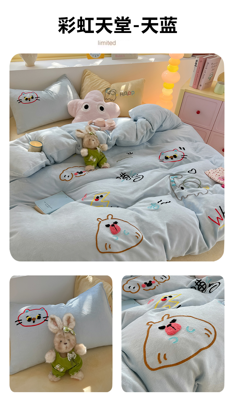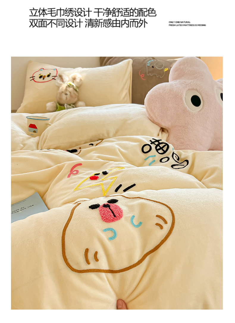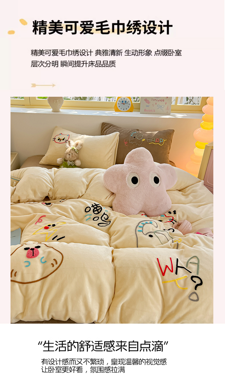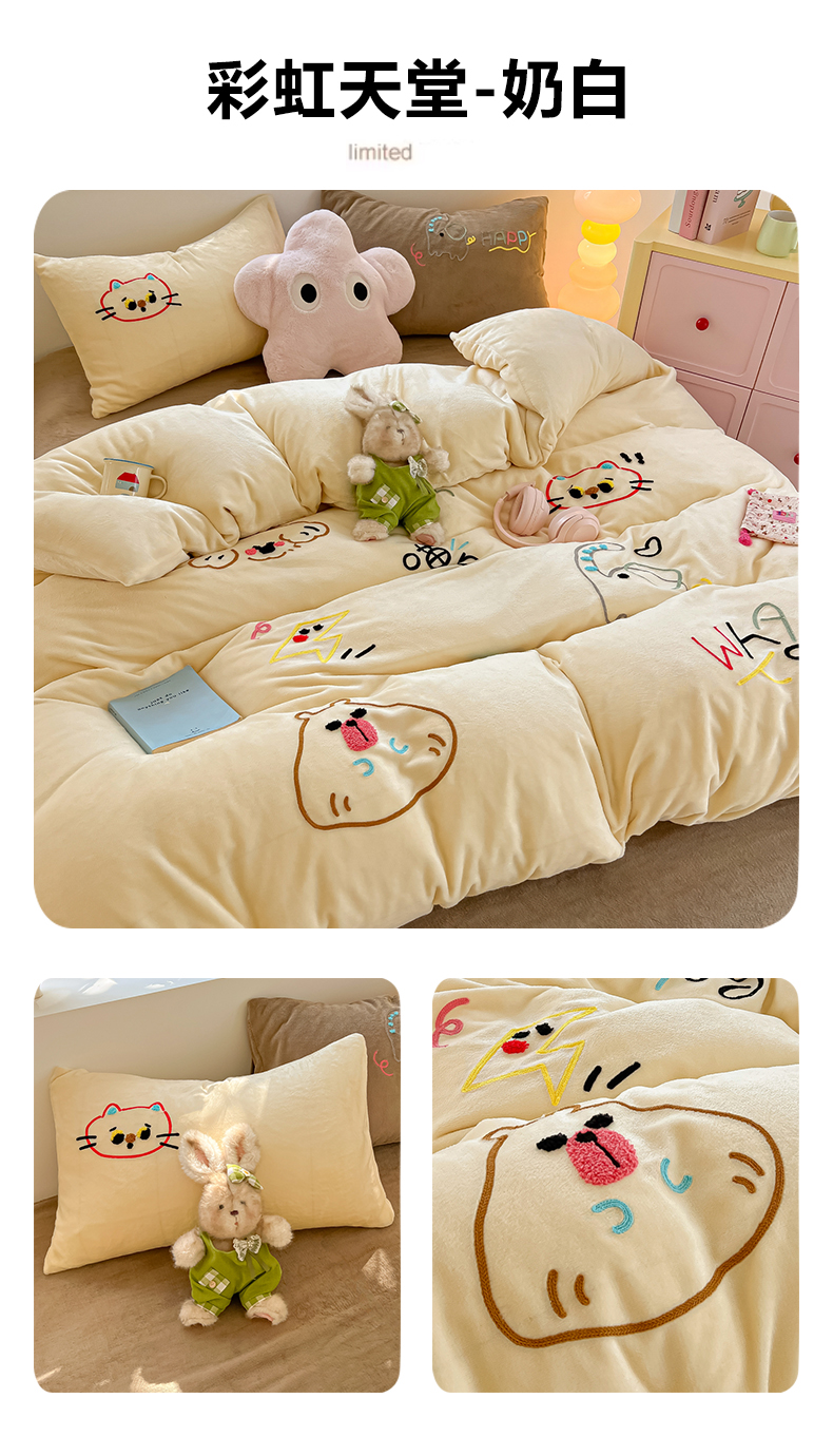 当前位置: 91家纺网 > 商品网购 > 床品套件 > 四件套 > 牛奶绒四件套 > 子钦家纺 2025新款加厚牛奶绒INS风撞色毛巾绣四件套-彩虹天堂 彩虹天堂-奶白