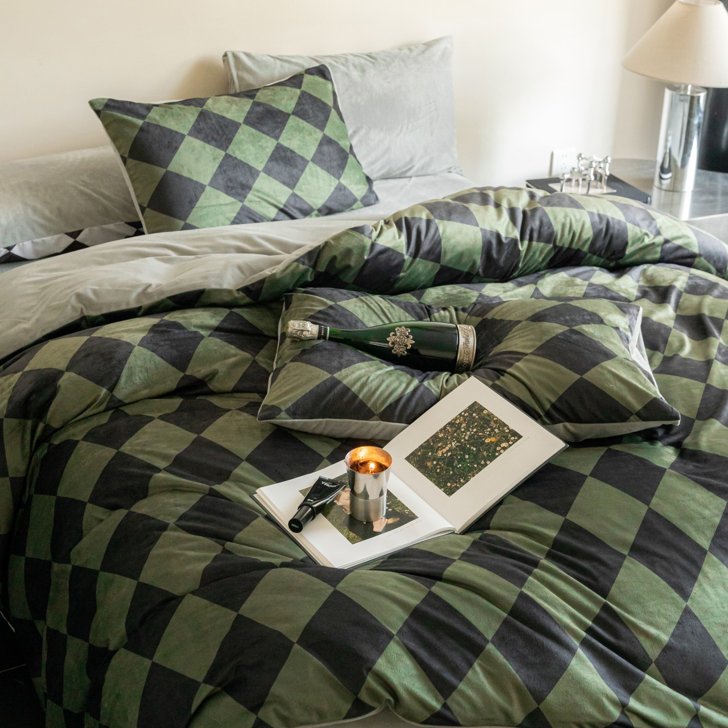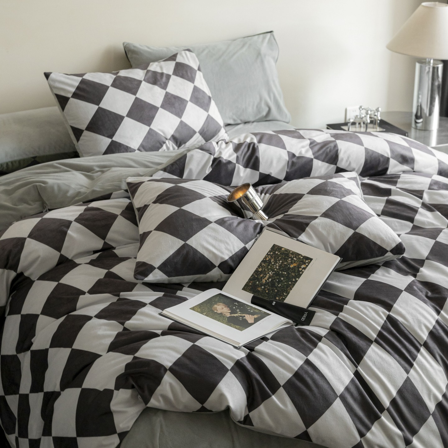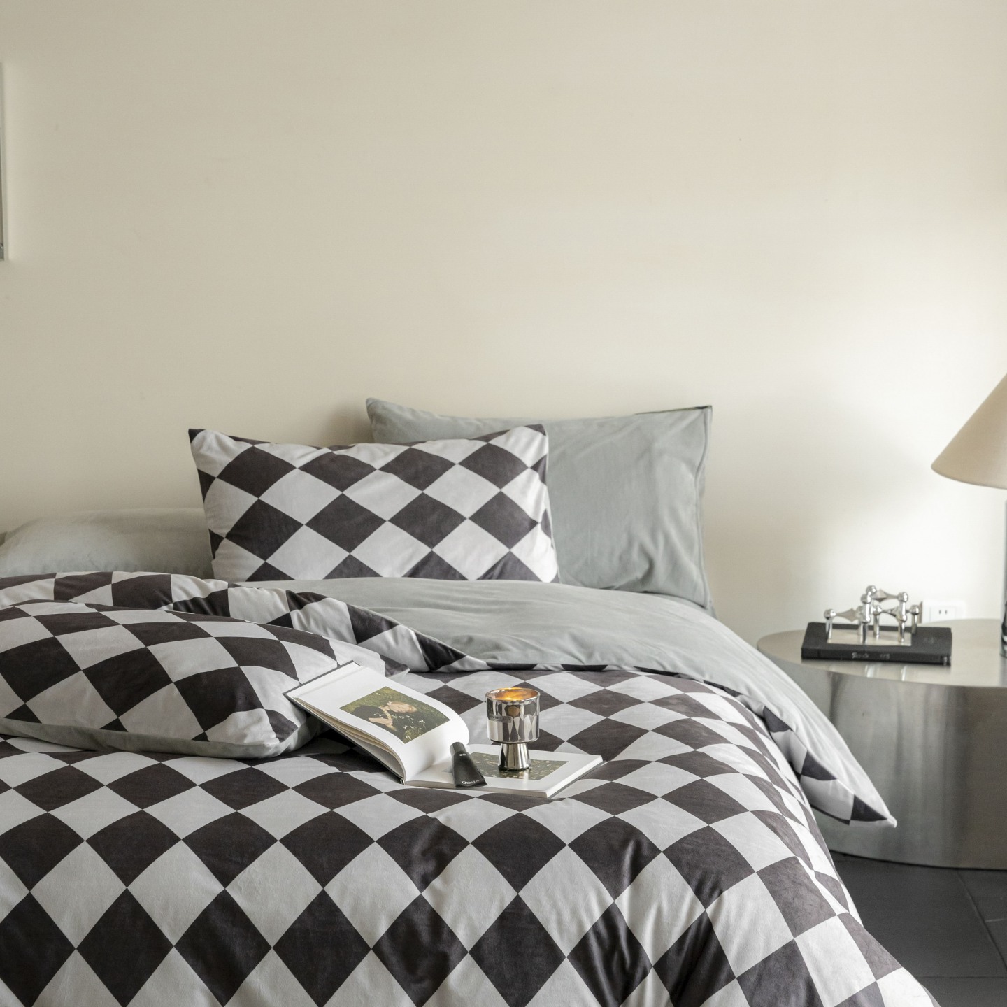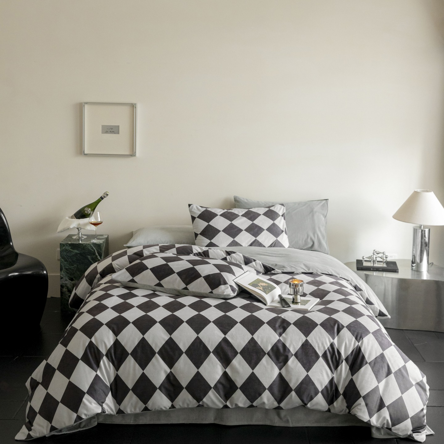 (总)ONE TWO ONE 121 【提供买家秀】【会员-20】【控价商品】【专版花型】2026新款100s长绒棉纯棉全棉床上用品数码印花四件套,罗曼格纹-灰,罗曼格纹-金