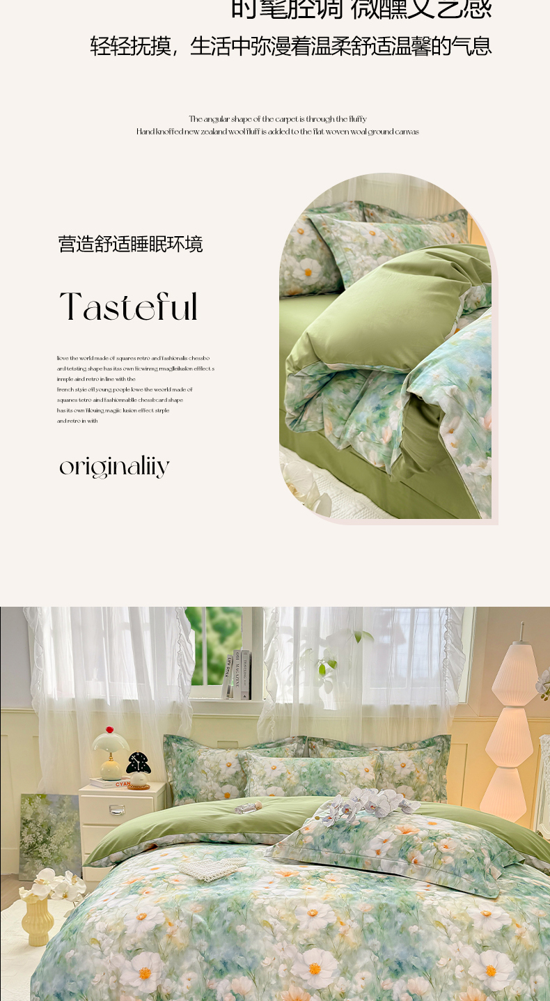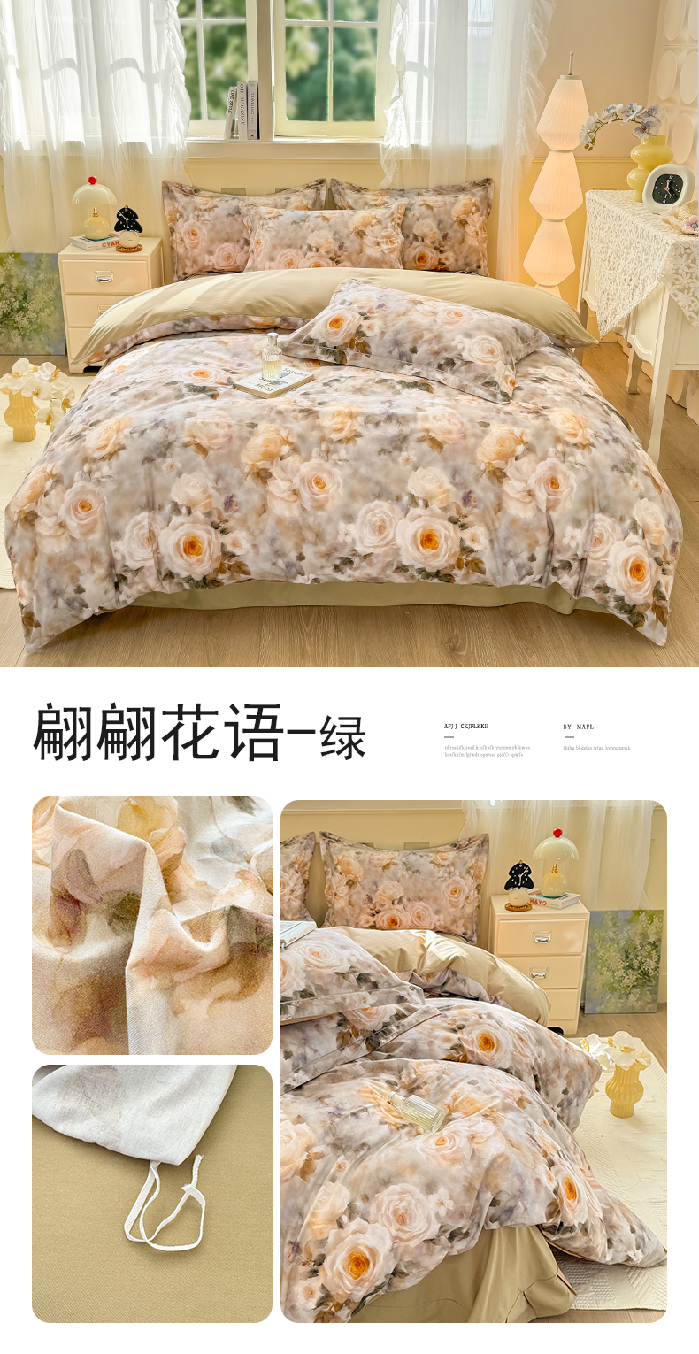 (总)红日子纺织品 2025新款全棉纯棉数码印花四件套,花暖容颜-绿,波斯记忆-蓝,茶山露水-桔,淡雅清风-蓝,芳若-绿,花情共舞-米,焕彩玫瑰-黄,美尼尔-粉,莫兰迪-紫,莫妮花园-粉,浓情蜜意-粉,翩翩花语-绿,秋日盛情-黄,日落花雨-灰,如若梦境-绿,诗丹娜-深蓝,邂逅柔情-蓝,秀雅佳人-灰