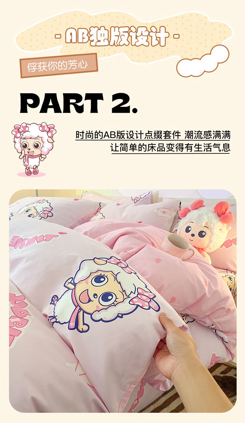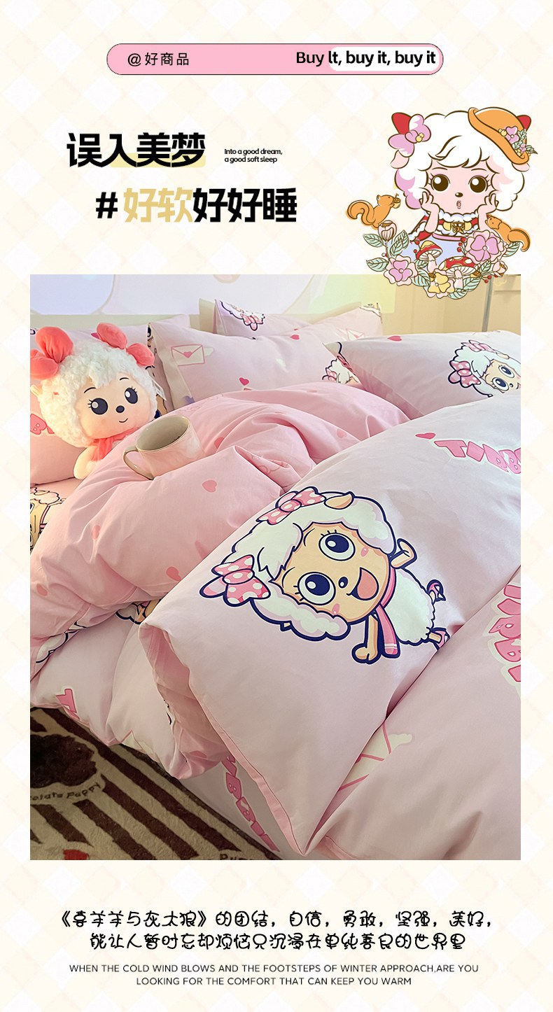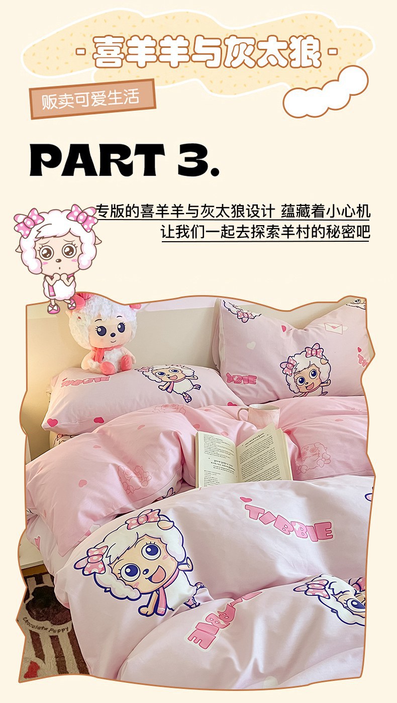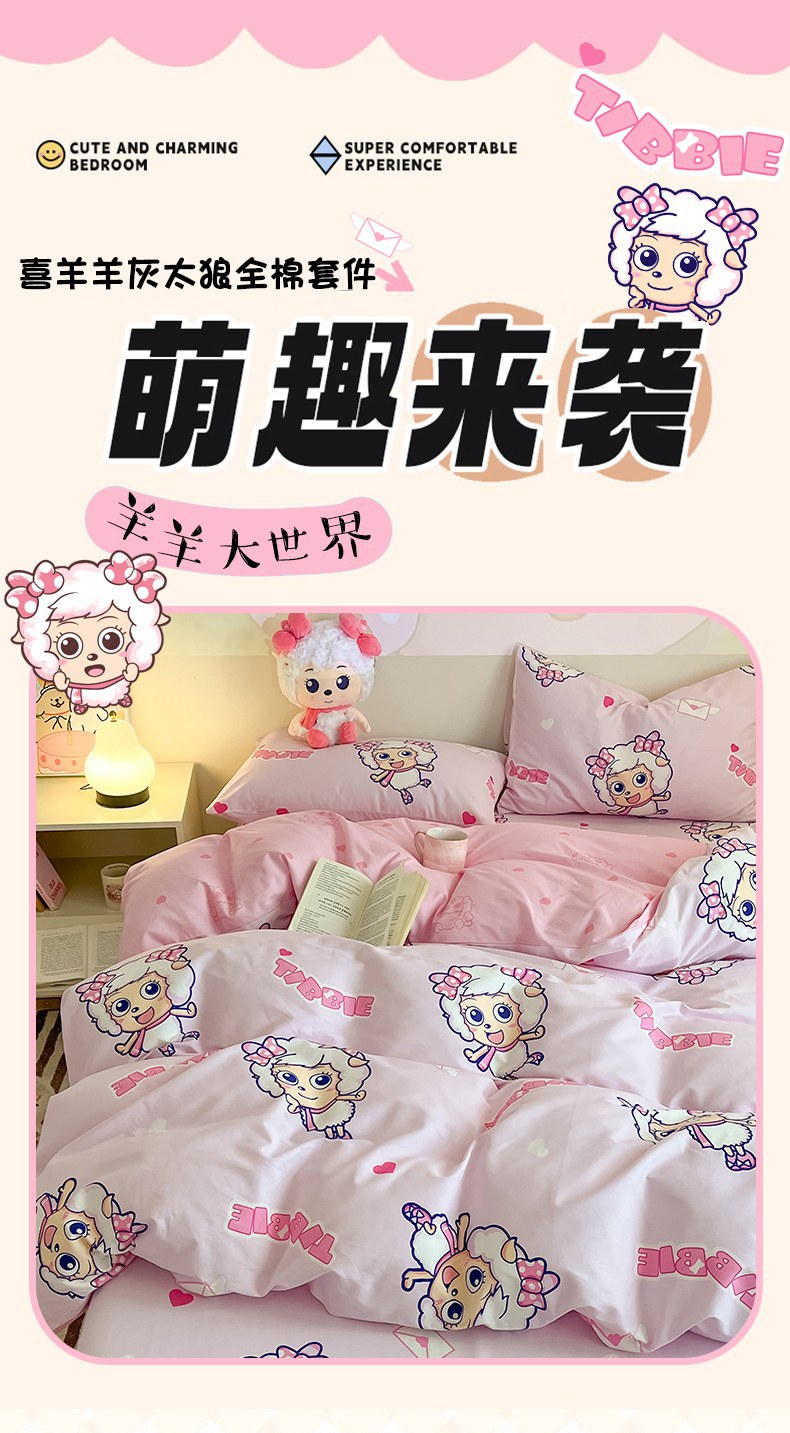 当前位置: 91家纺网 > 商品网购 > 床品套件 > 四件套 > 全棉普通四件套 > 金鑫汇家纺 2025新款喜羊羊与灰太狼全棉四件套 乖巧美羊羊