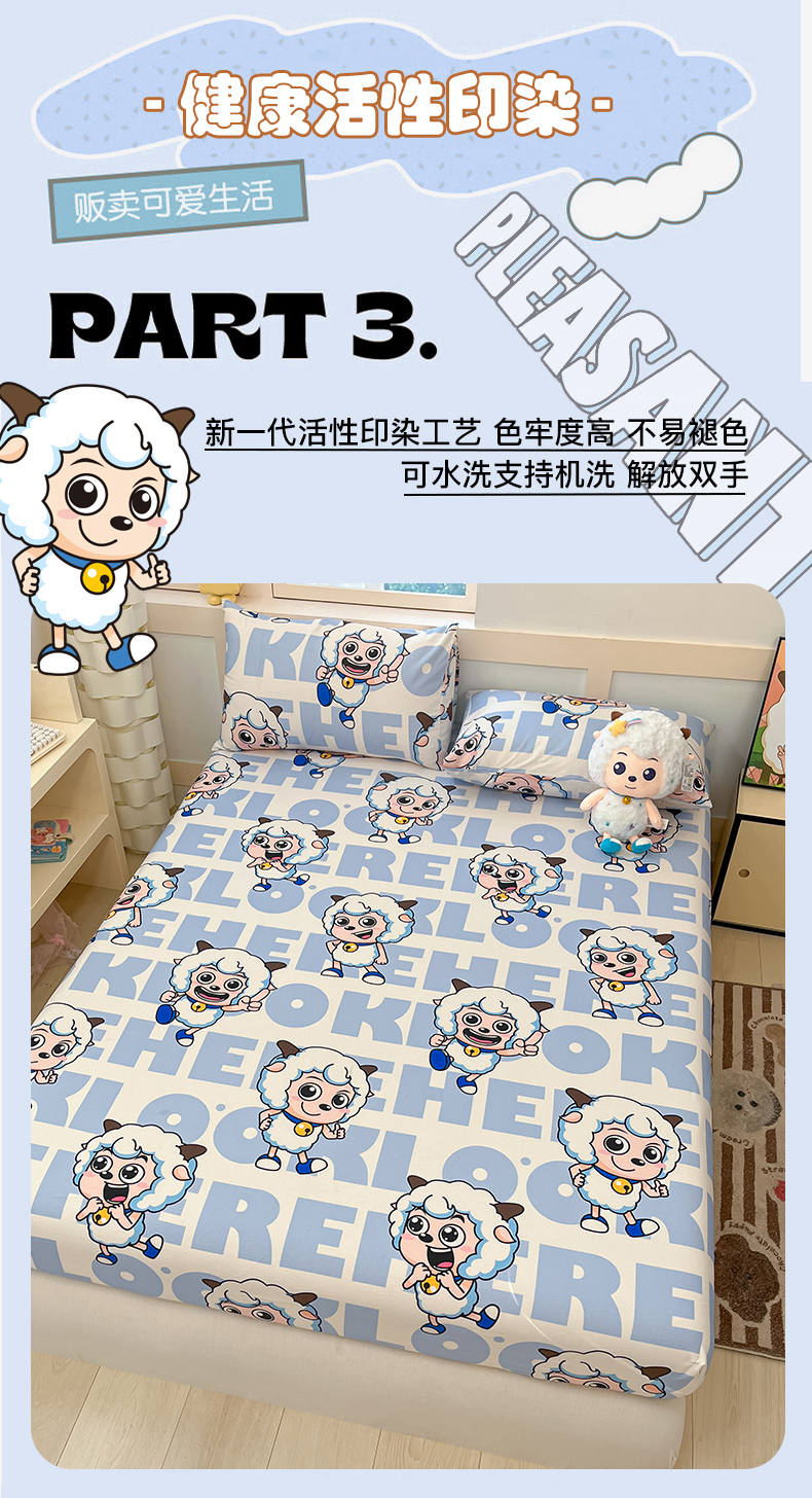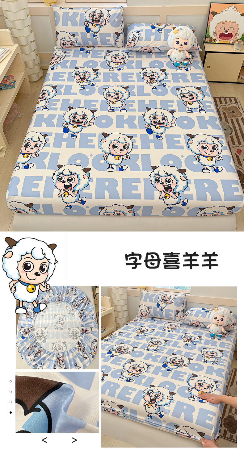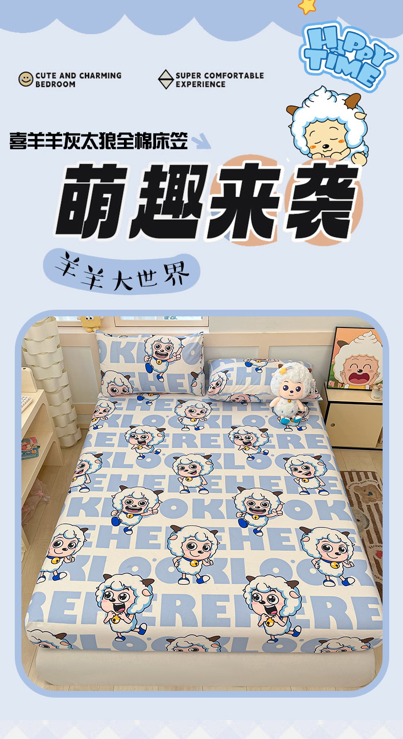 商品名称:金鑫汇家纺 2025新款喜羊羊与灰太狼全棉单品床笠 字母喜羊羊