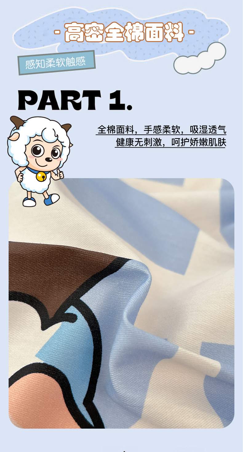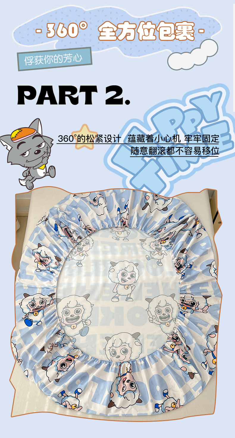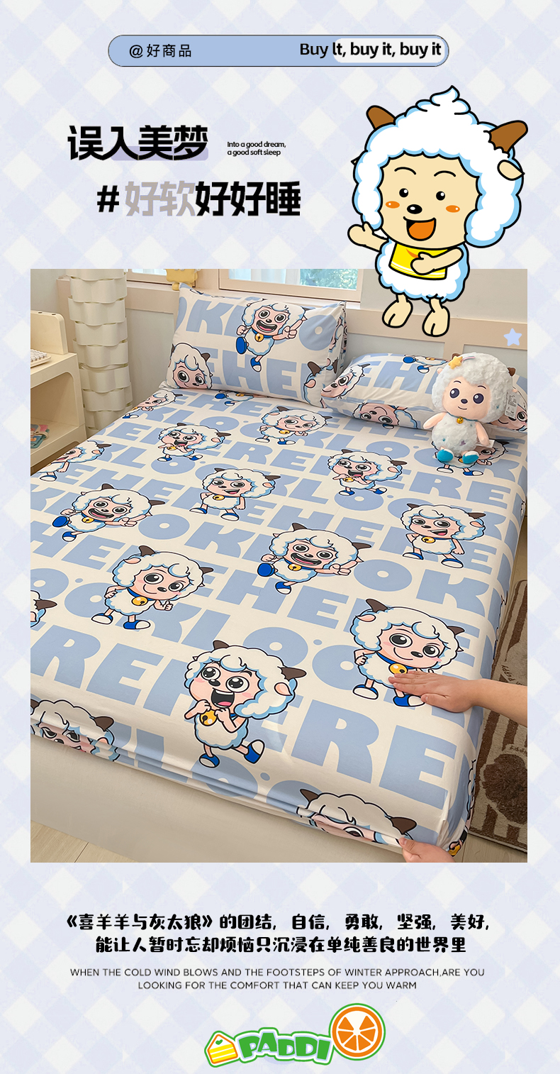 商品名称:金鑫汇家纺 2025新款喜羊羊与灰太狼全棉单品床笠 字母喜羊羊