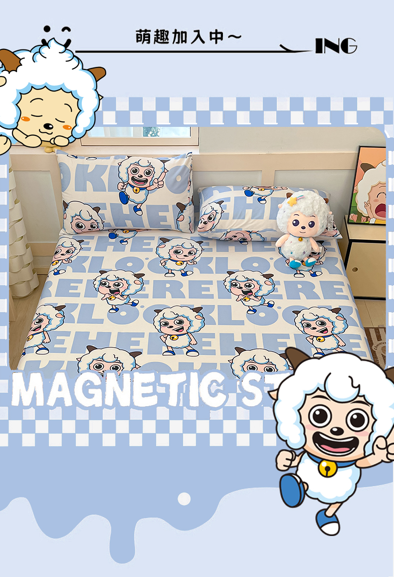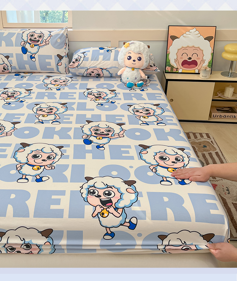 金鑫汇家纺 2025新款喜羊羊与灰太狼全棉单品床笠 字母喜羊羊