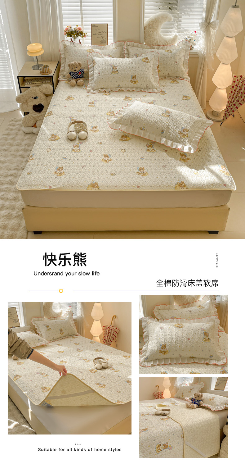 羽爱家纺 2025新款舒适可定制全棉防滑床盖软席快乐熊