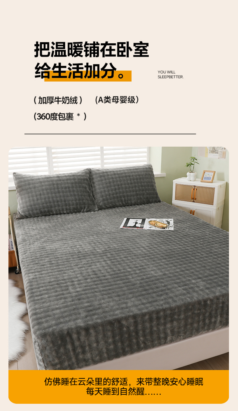 (总)卡诗兰家纺 2026新款单层牛奶绒床笠,翡翠绿,虎皮黄,兰花紫,玛瑙灰,梦幻粉,星蓝,岩石棕,鸢尾蓝,月影白,组合图