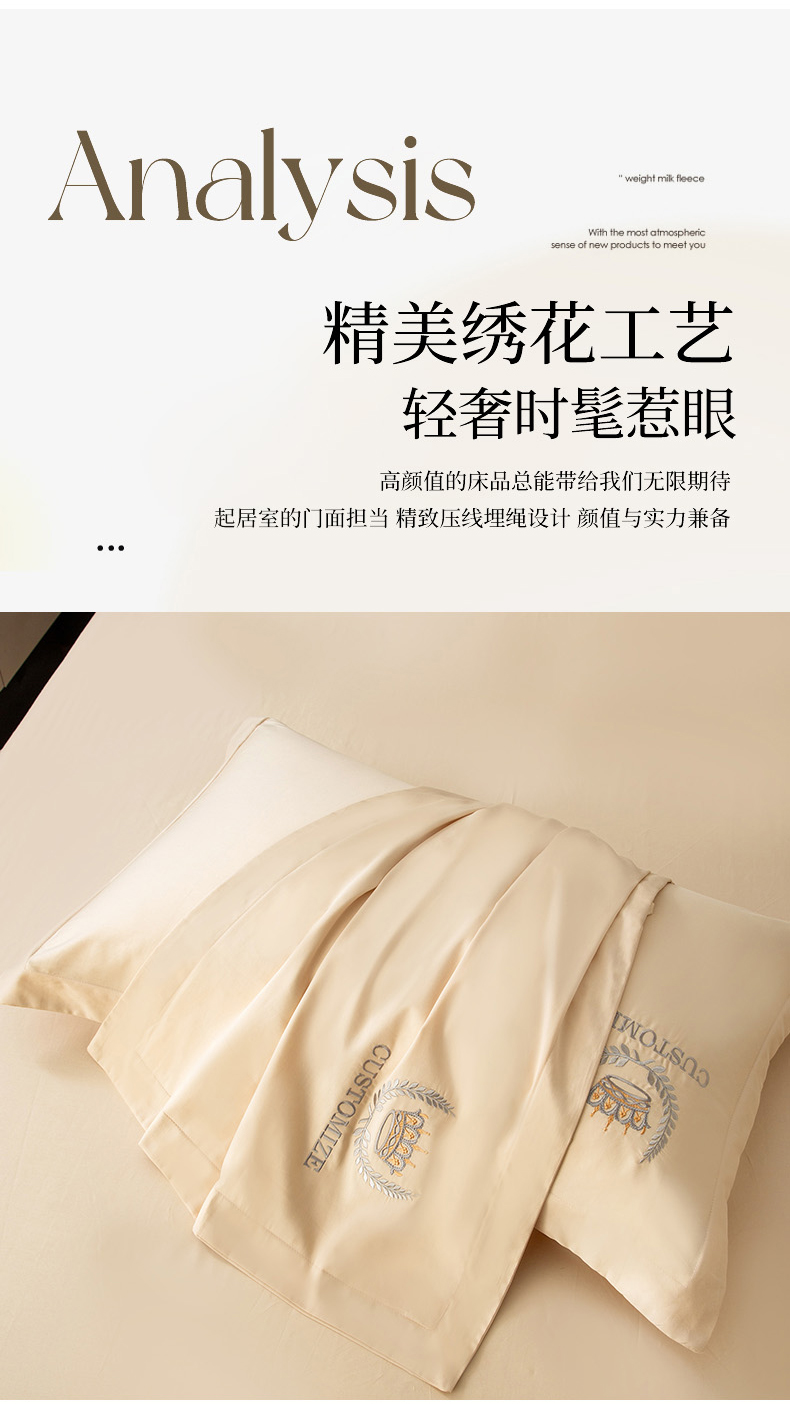 卡诗兰 2025新款A类50S双股新疆长绒棉贡缎面料刺绣四件套-高端礼盒装 豆绿-皇冠