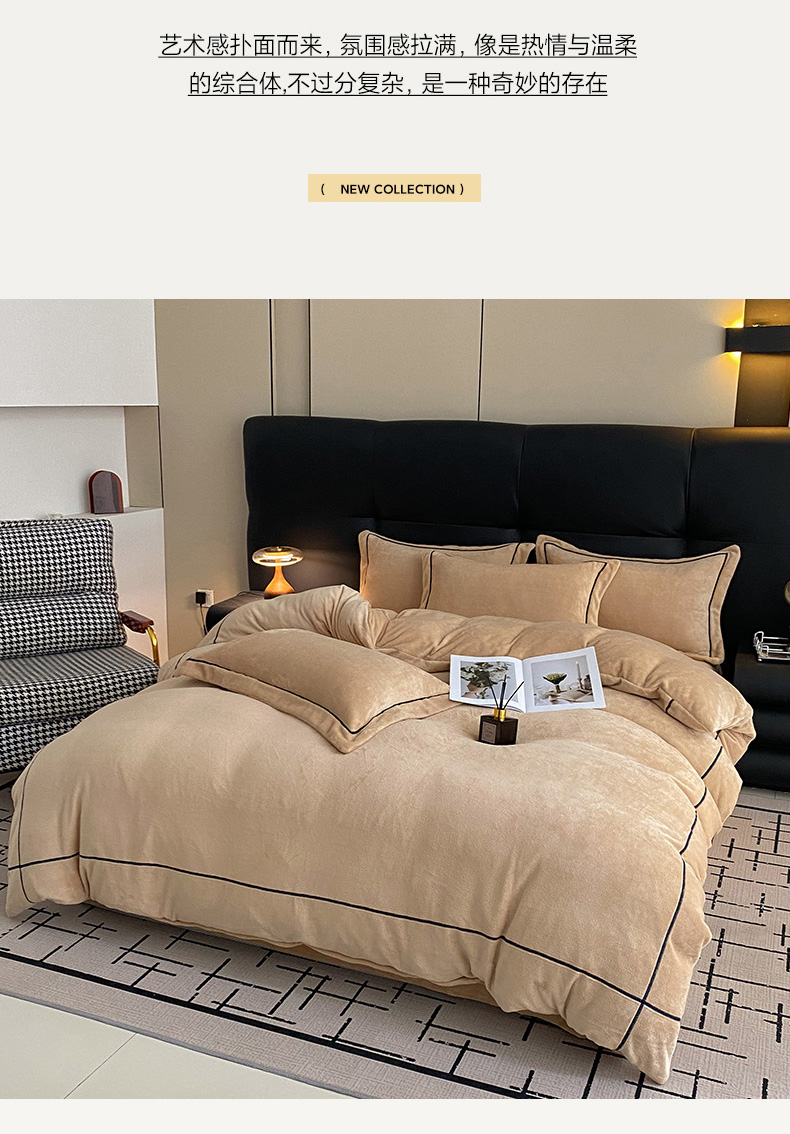 卡诗兰2025款高克重加厚牛奶绒十字绣四件套 芭提雅豆沙