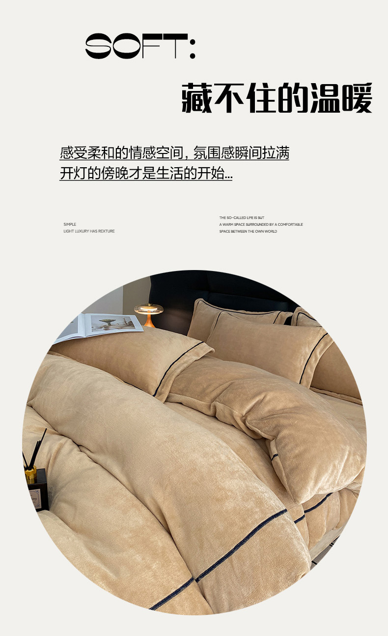 商品名称:卡诗兰2025款高克重加厚牛奶绒十字绣四件套 芭提雅豆沙