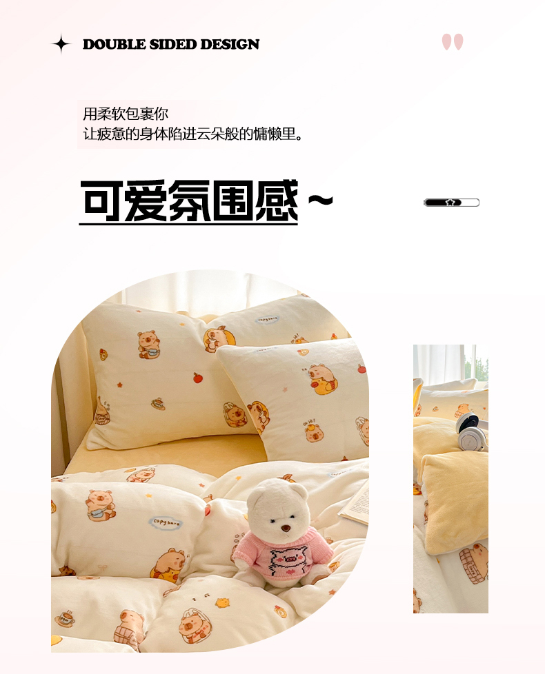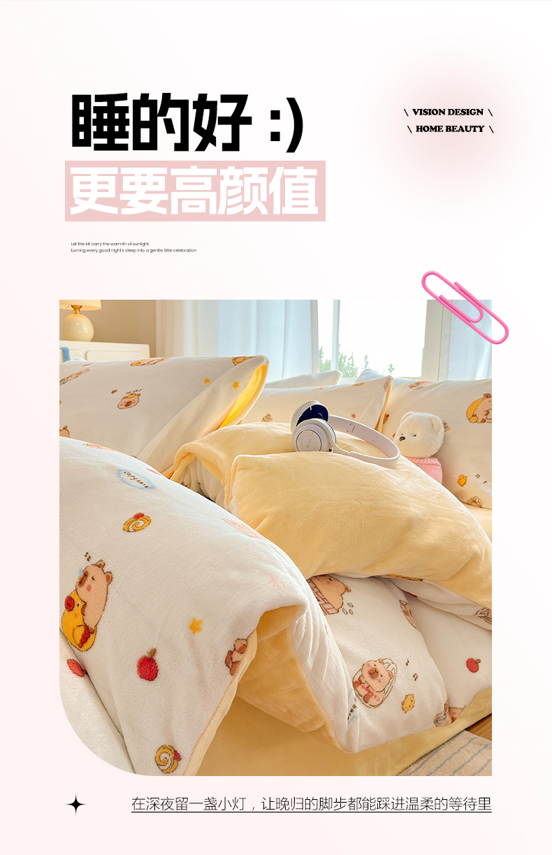 吉象家纺 2025新款高克重牛奶绒印花被套 小可爱