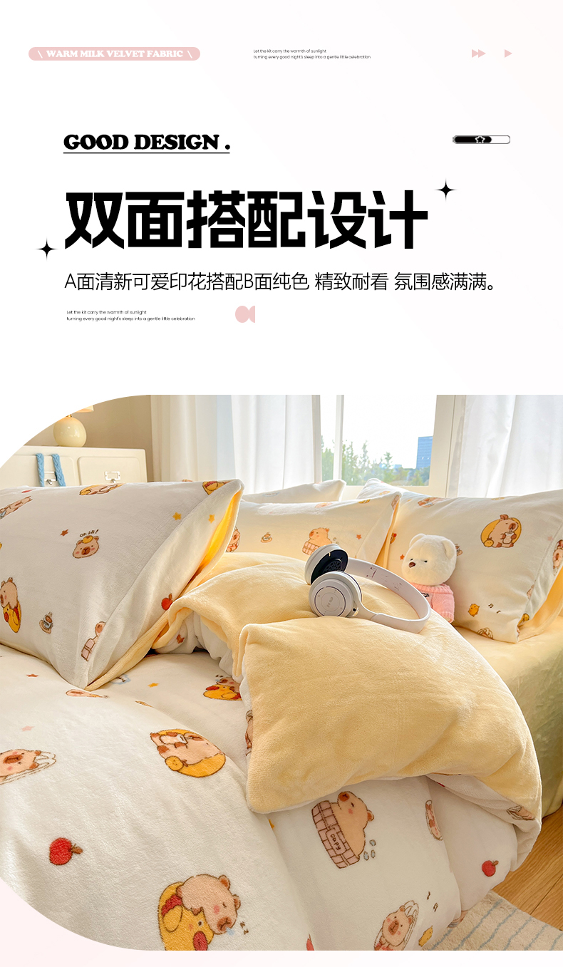 商品名称:吉象家纺 2025新款高克重牛奶绒印花被套 小可爱